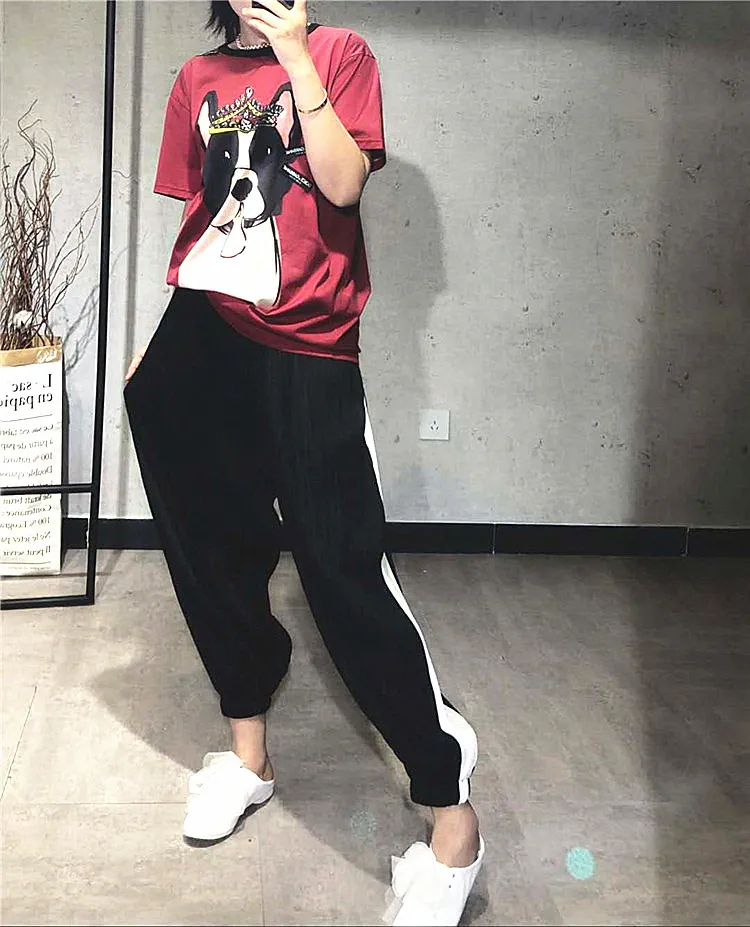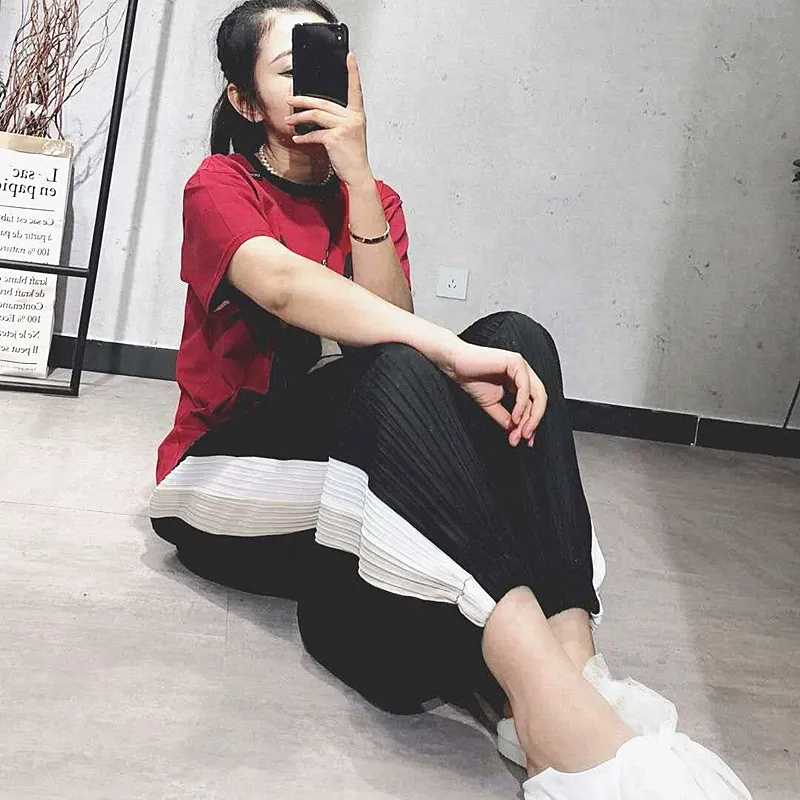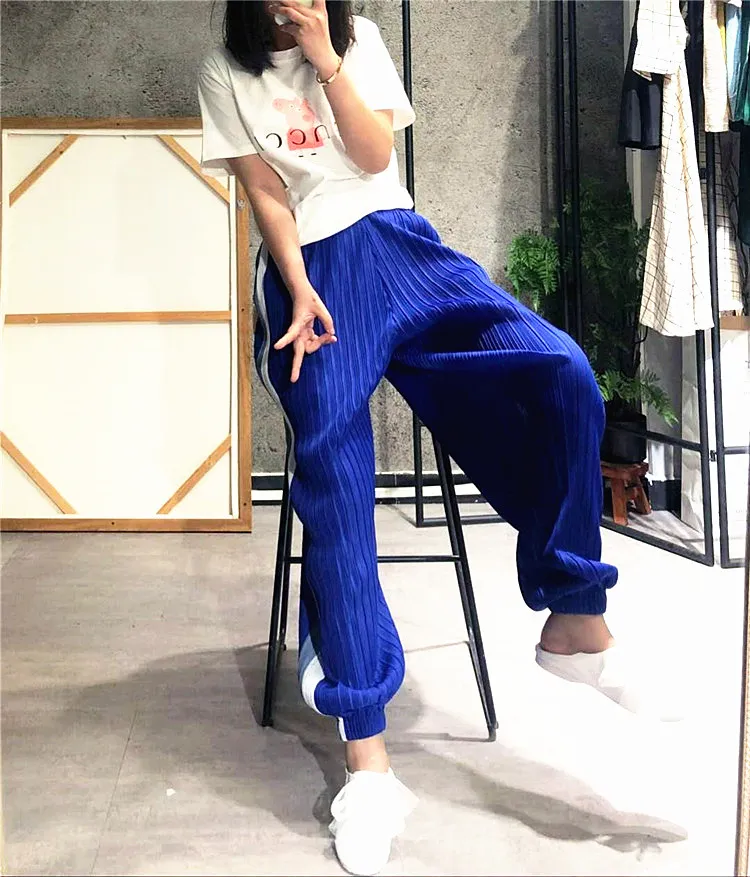 衣都精品- 2023新款寬鬆薄款闊腿褶皺休閒運動褲