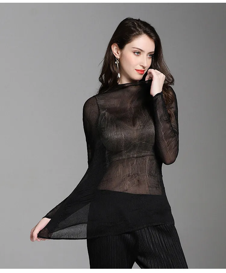 衣都精品- 2023新款長袖立領大碼褶皺打底上衣