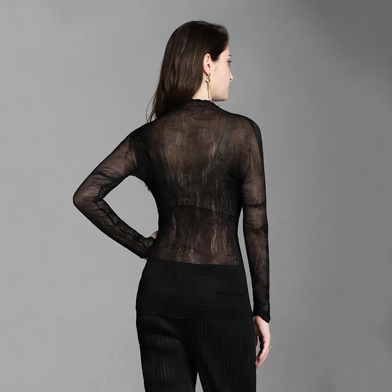 衣都精品- 2023新款超彈力修身減齡薄款褶皺上衣