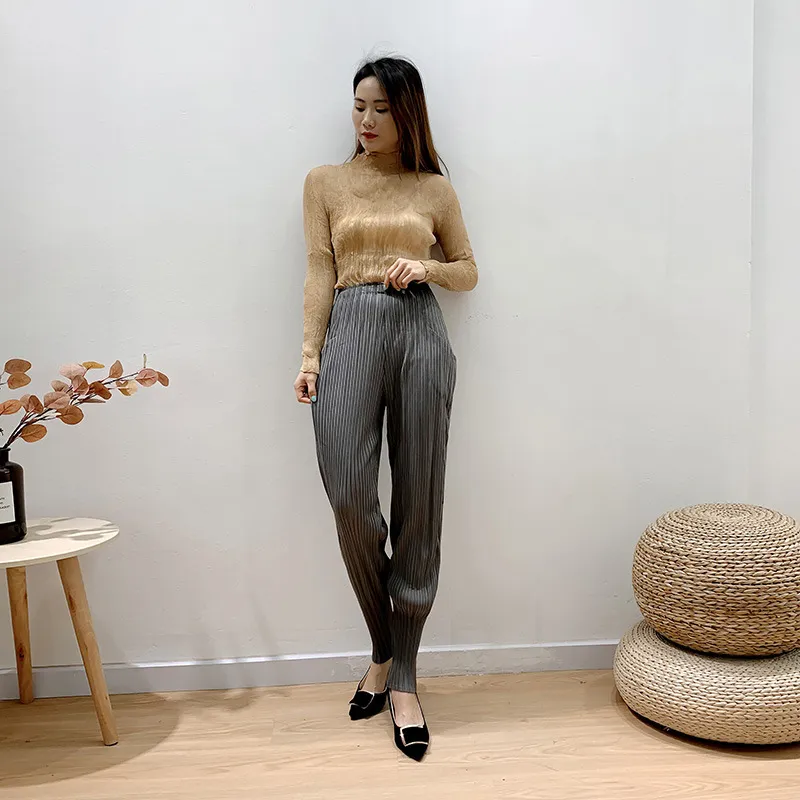 衣都精品- 2023新款寬鬆大碼小腳九分休閒褶皺哈倫褲
