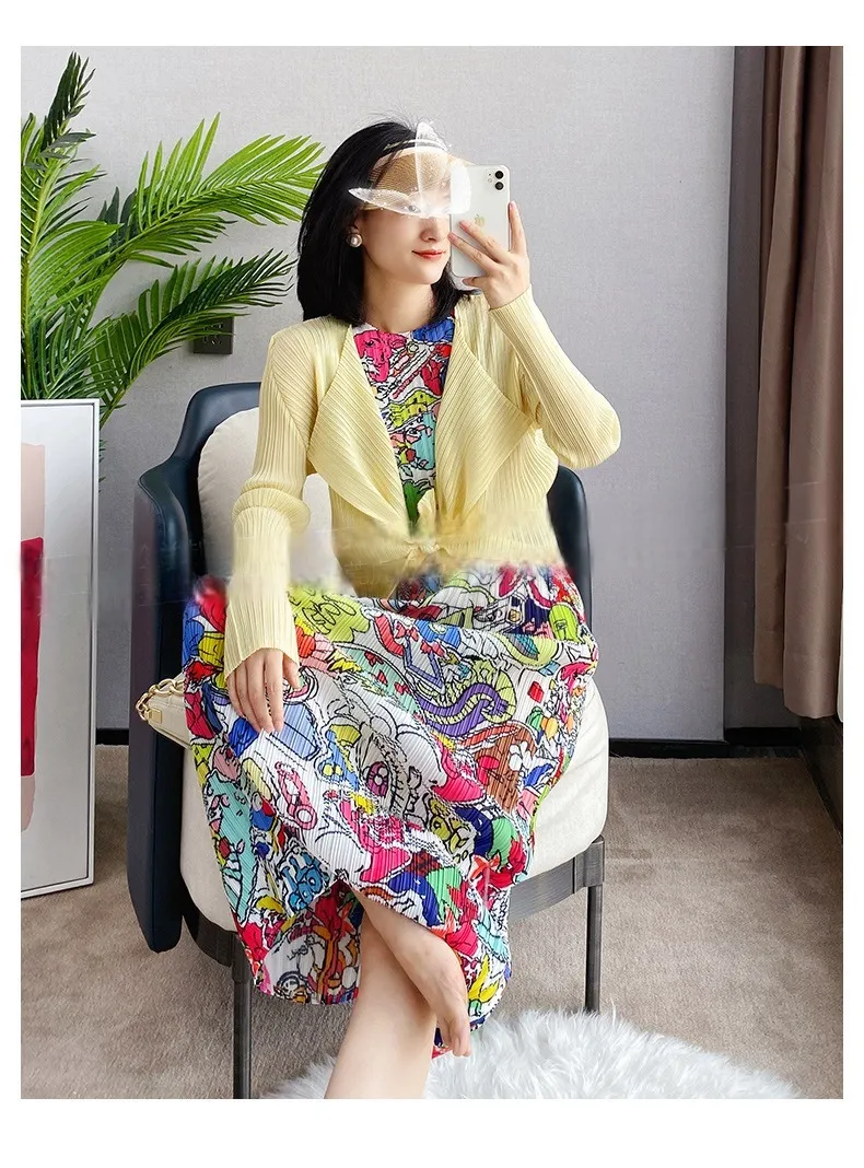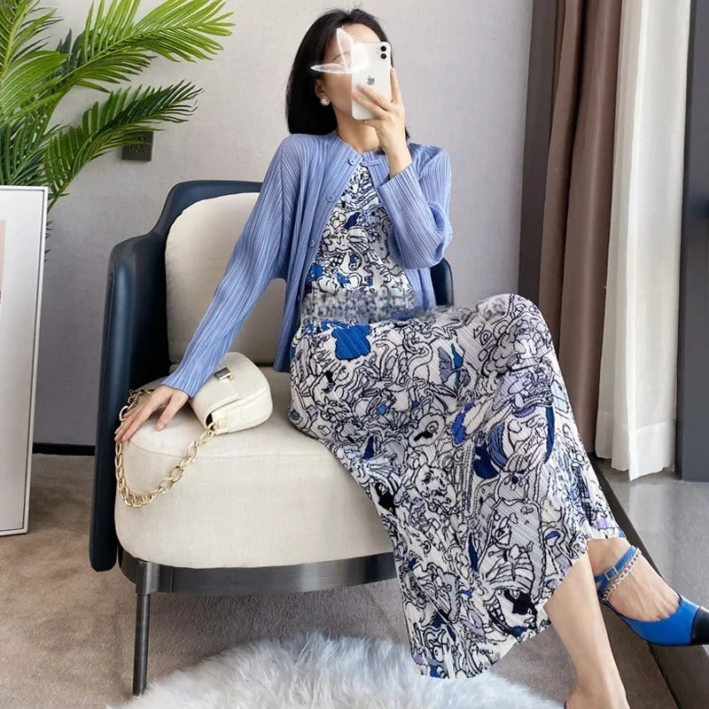 衣都精品- 2023新款時尚減齡印花褶皺背心裙