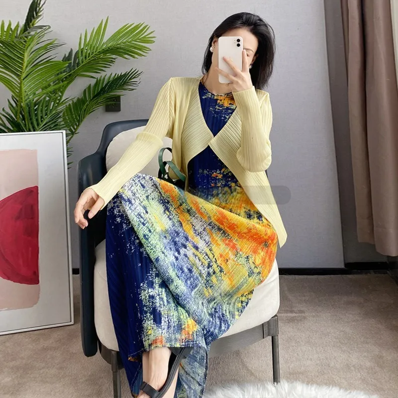 衣都精品- 2023新款時尚減齡印花褶皺背心裙