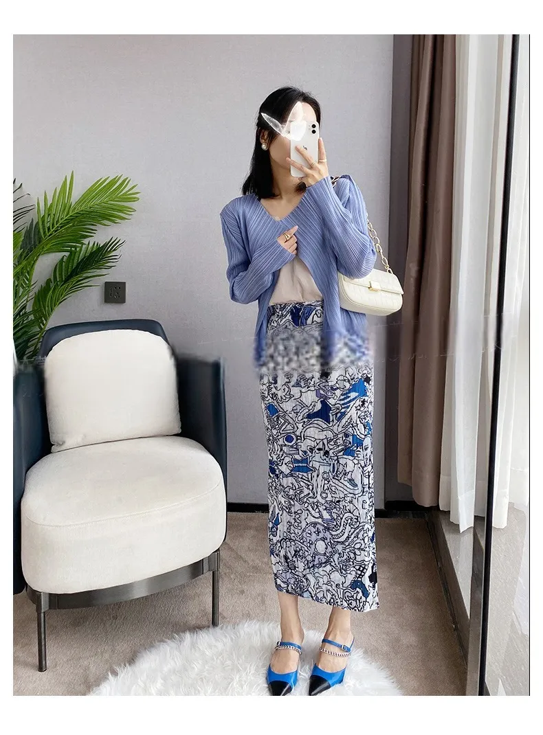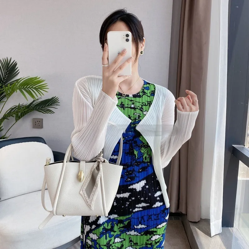 衣都精品- 2023新款時尚減齡印花褶皺背心裙