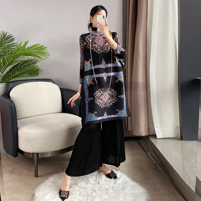 衣都精品- 2023新款時尚減齡印花褶皺背心裙