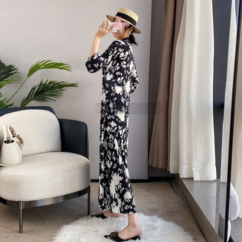 衣都精品- 2023新款中式複古碎花長袖T卹+直筒褲褶皺套裝