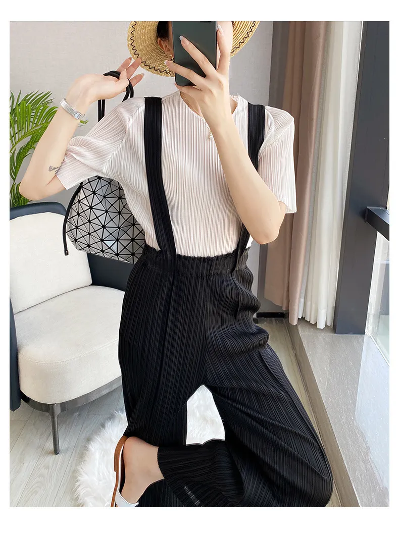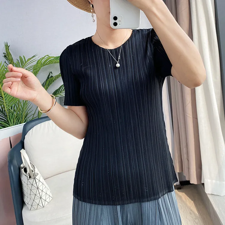 衣都精品- 2023新款簡約百搭氣質褶皺短袖圓領上衣