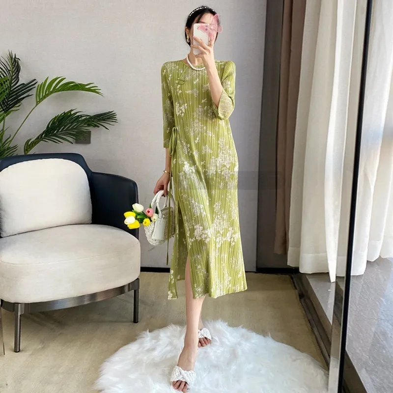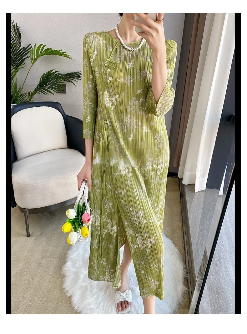 衣都精品- 2023新款復古盤扣中式改良旗袍褶皺連衣裙