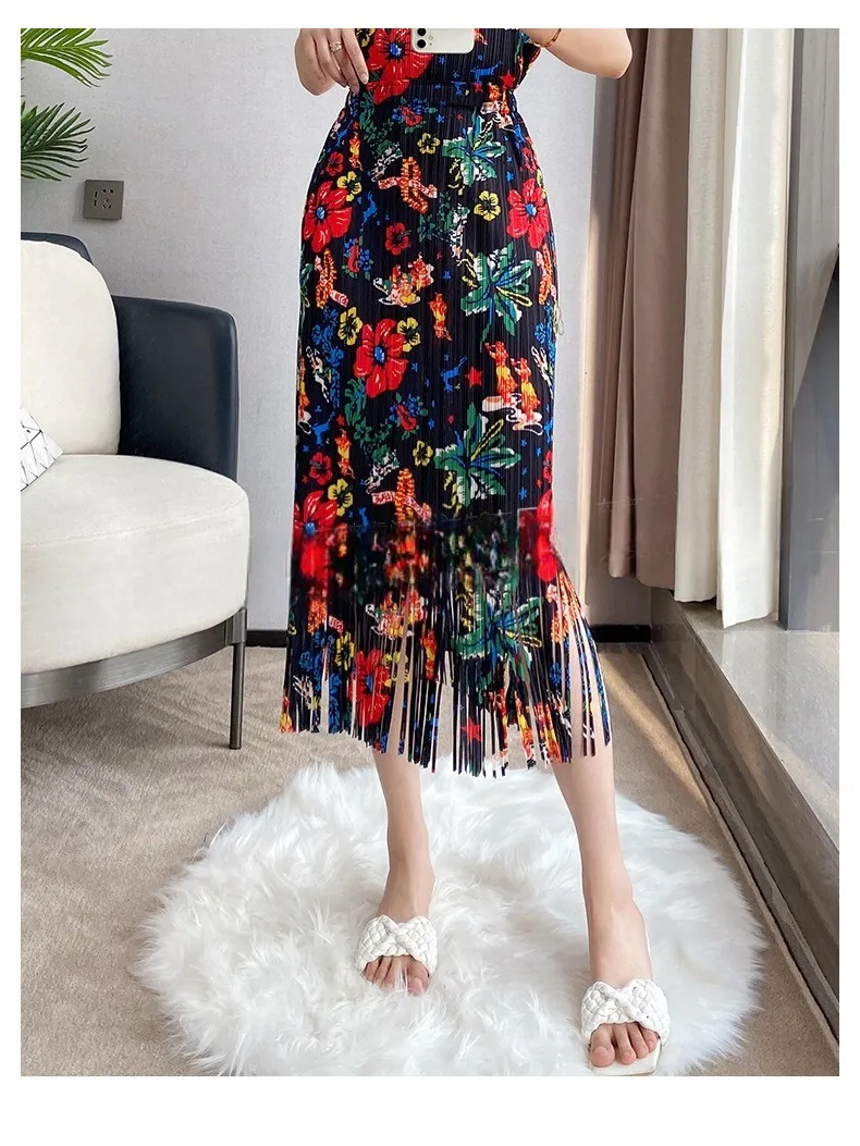 衣都精品- 2023新款高端時尚薄款流蘇上衣+半身裙褶皺套裝