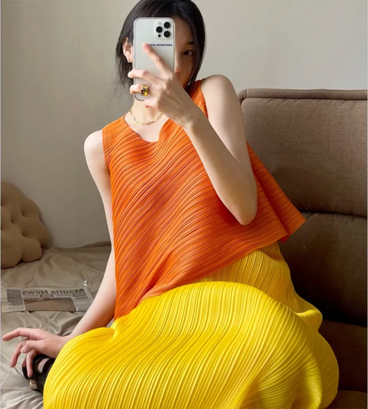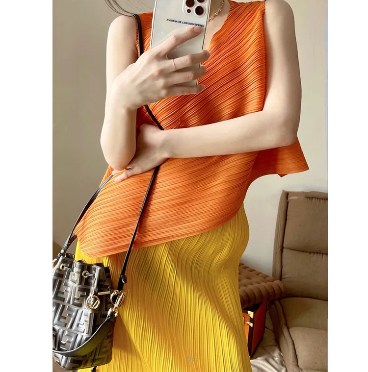 衣都精品- 2023新款夏季無袖背心碎花褶皺上衣