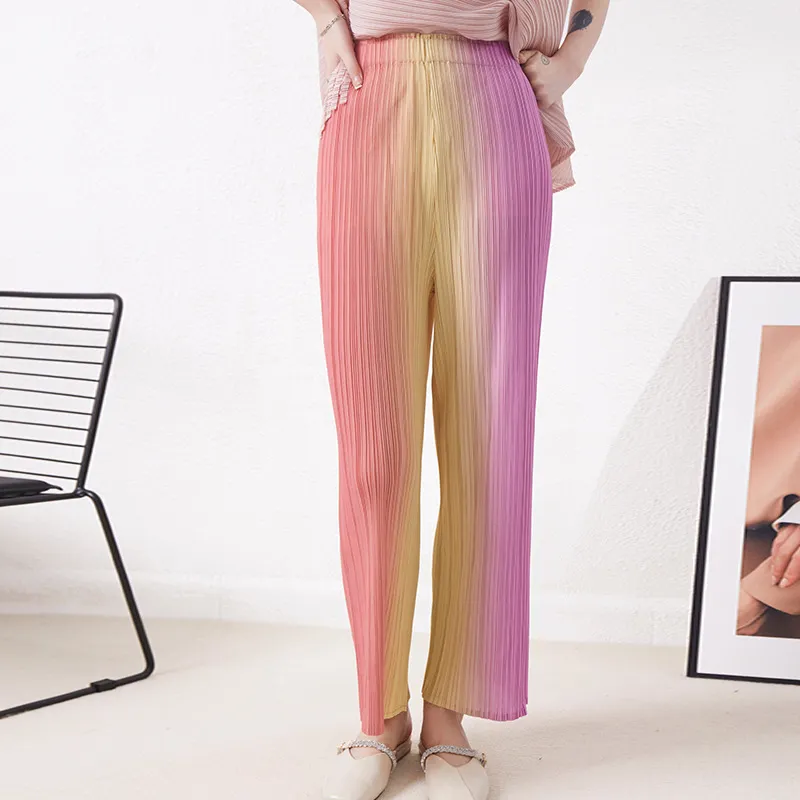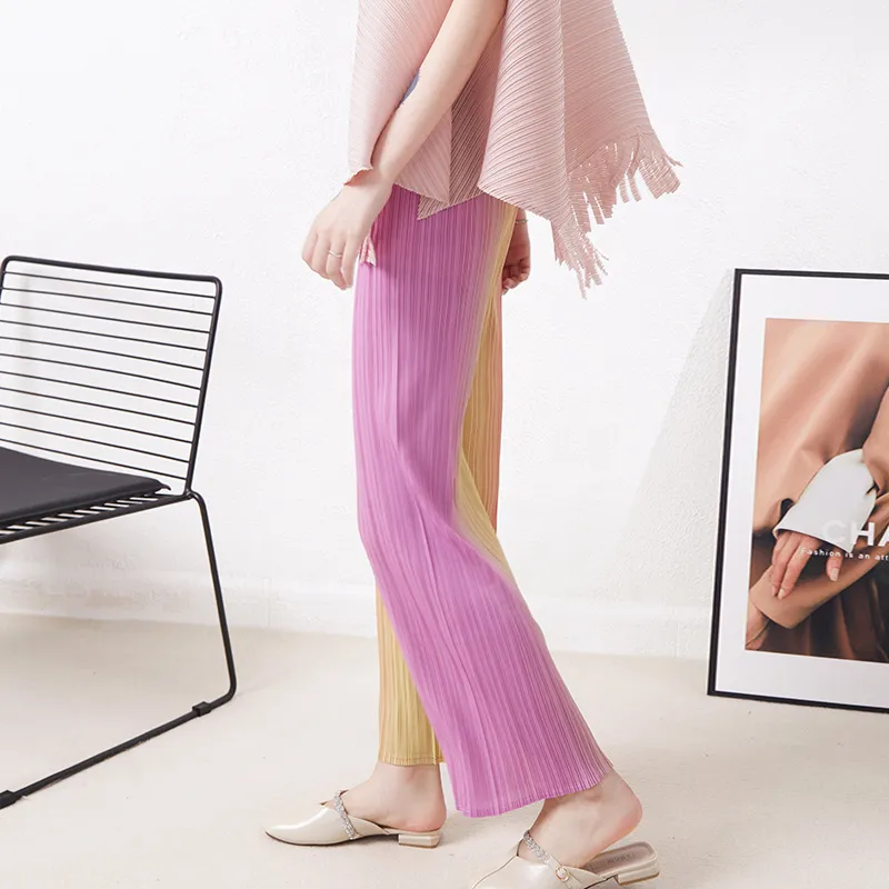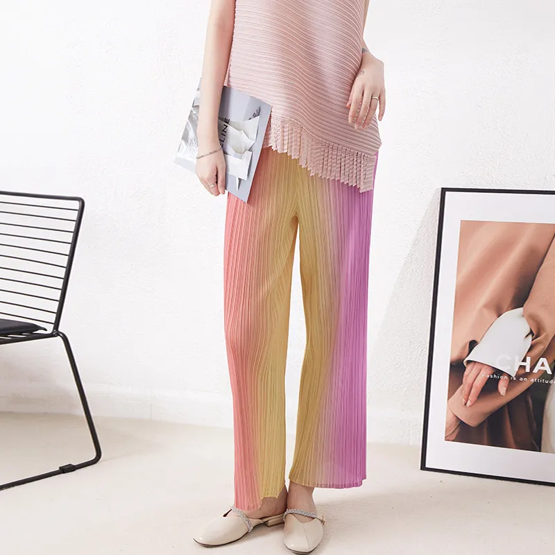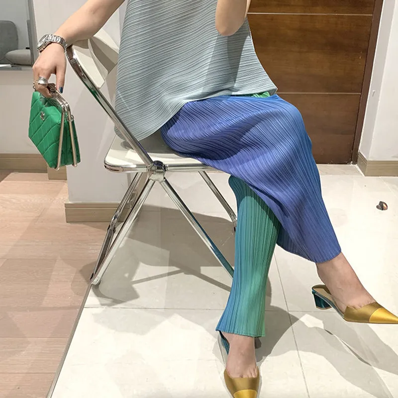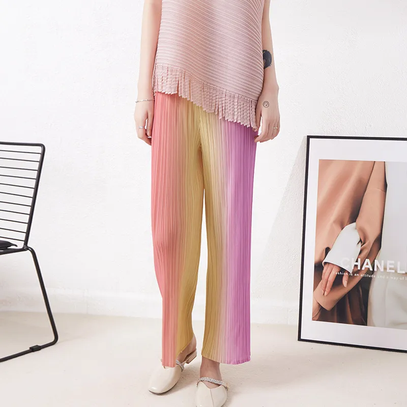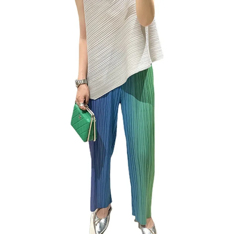 衣都精品- 2023新款高腰寬鬆垂感漸變色褶皺闊腿褲