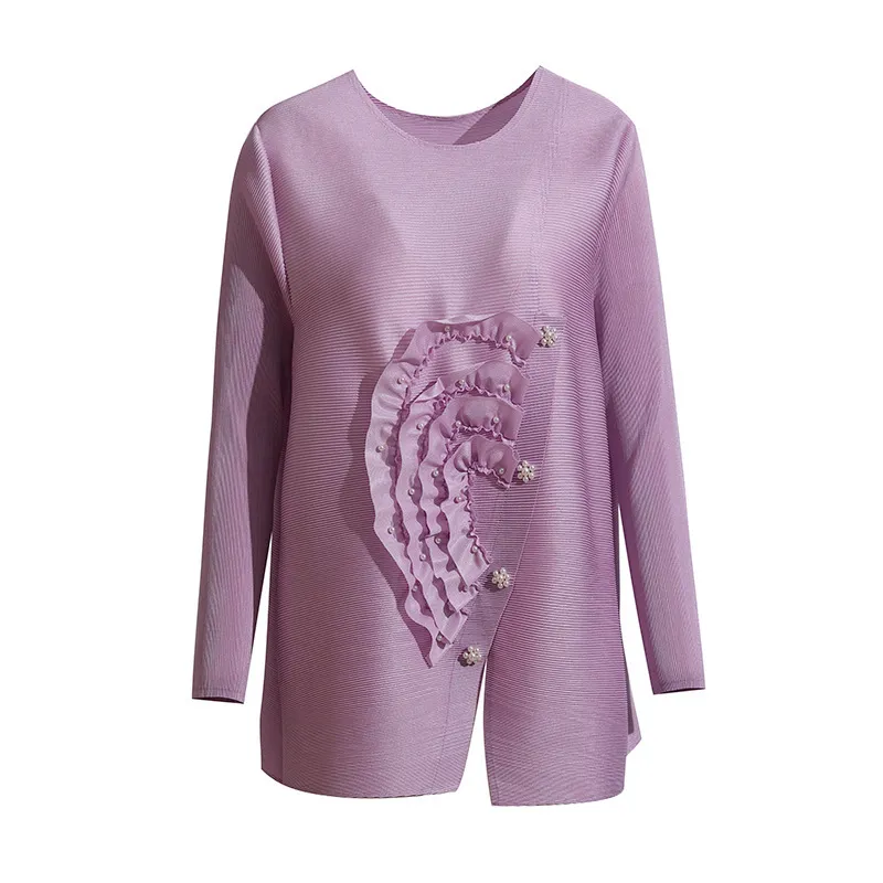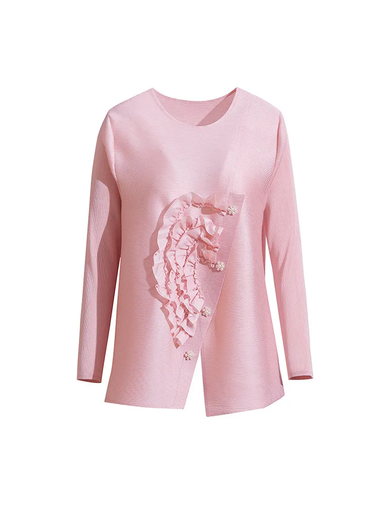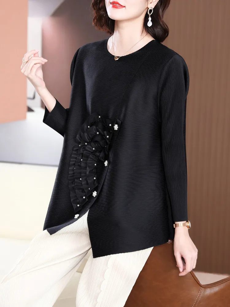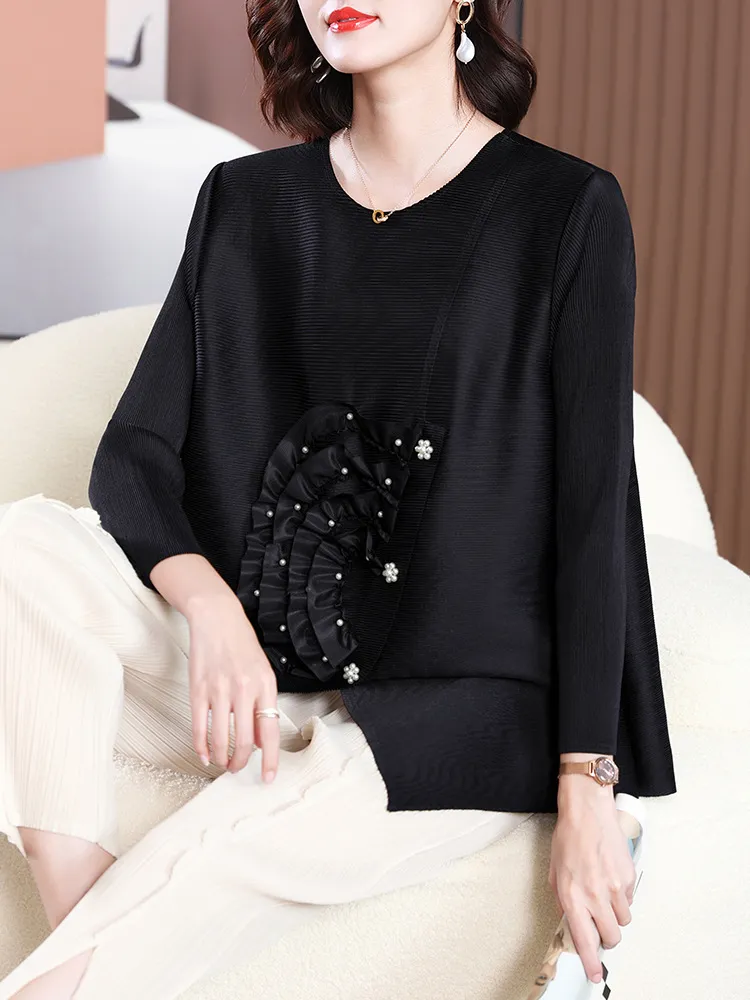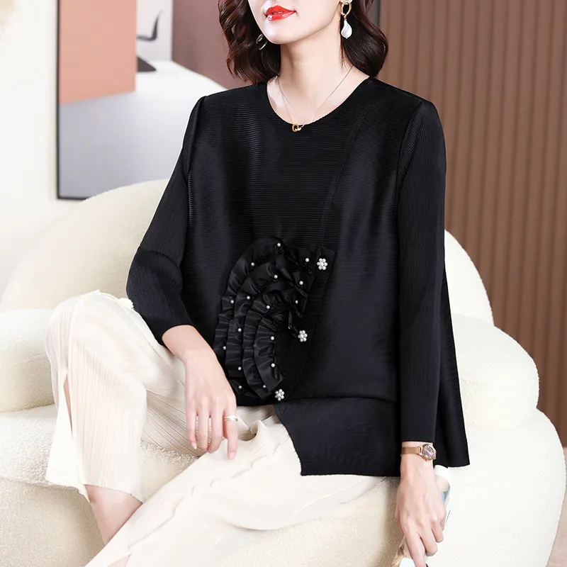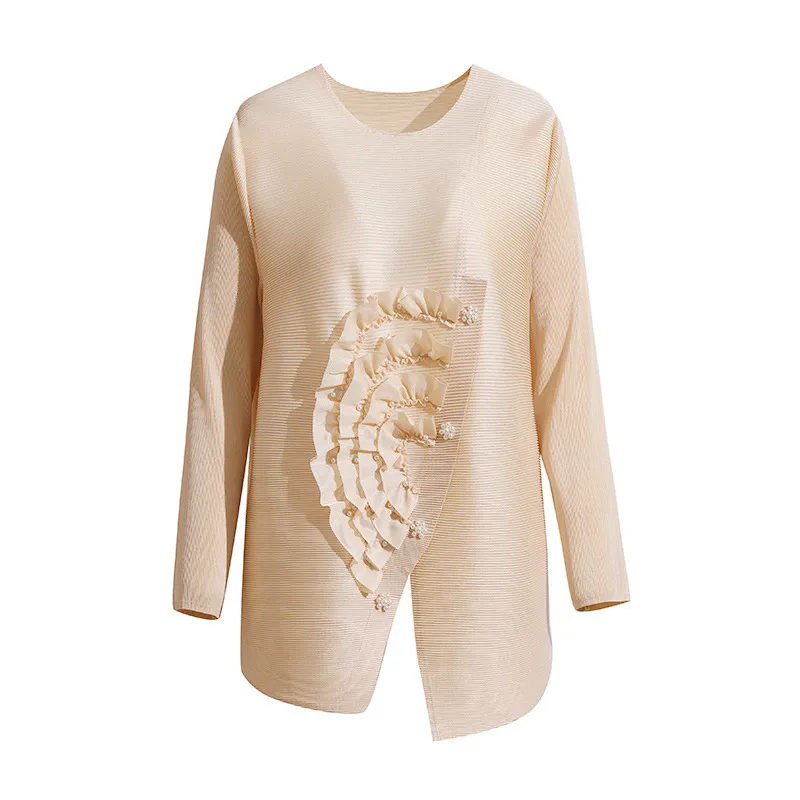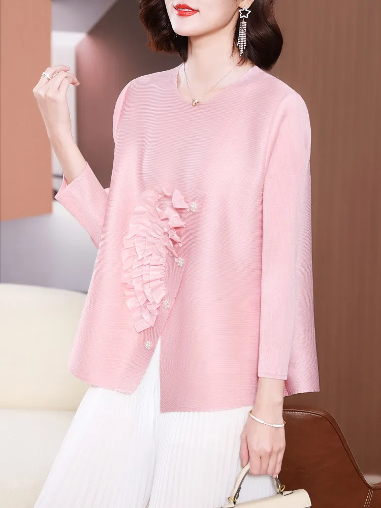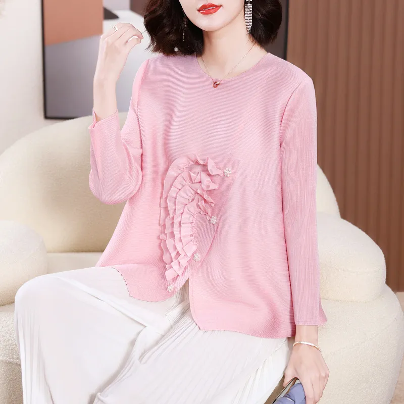 衣都精品- 2023新款寬鬆大碼遮肉純色褶皺上衣