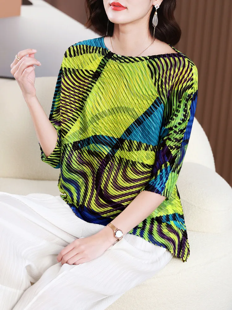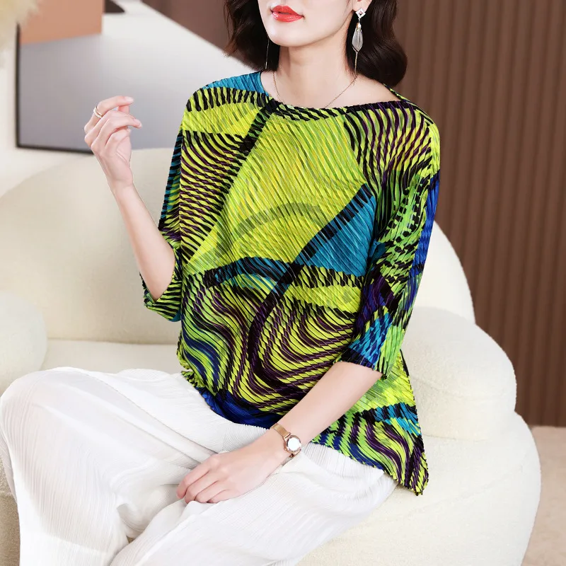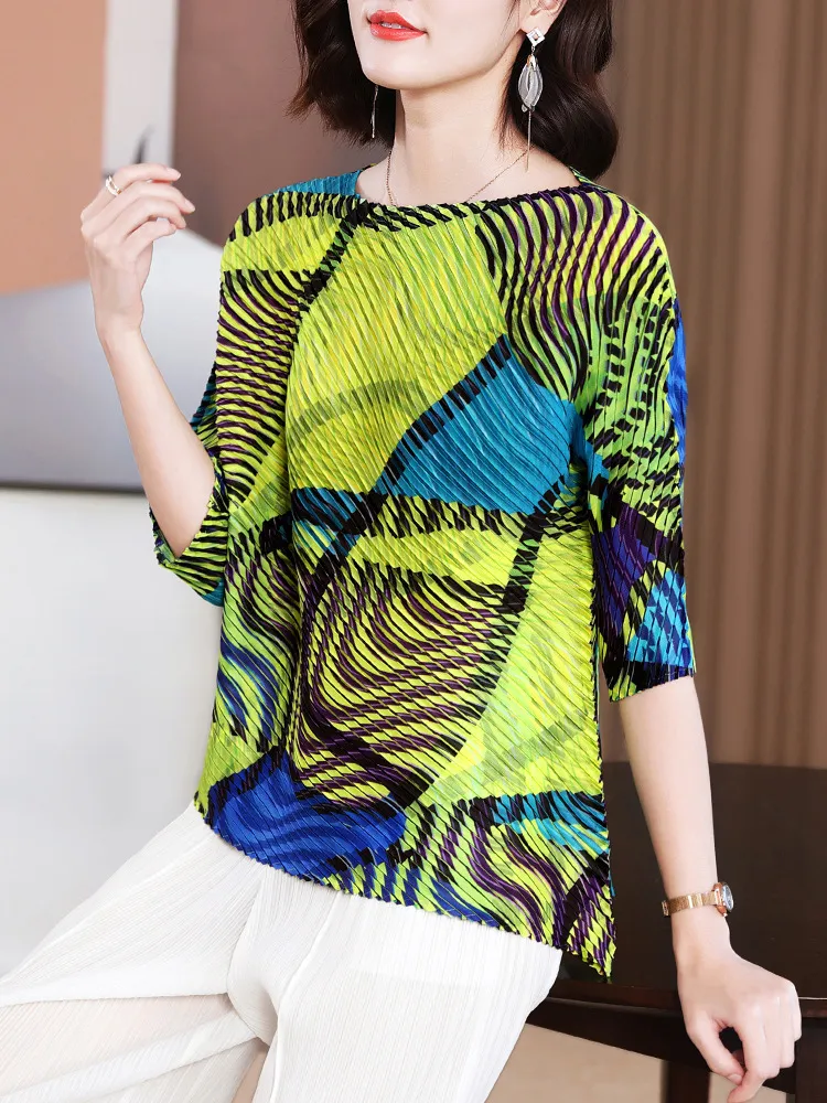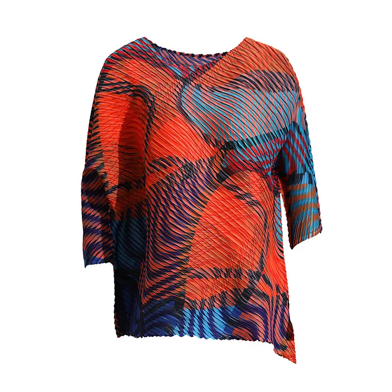 衣都精品- 2023新款時尚印花百搭褶皺上衣