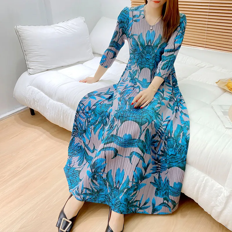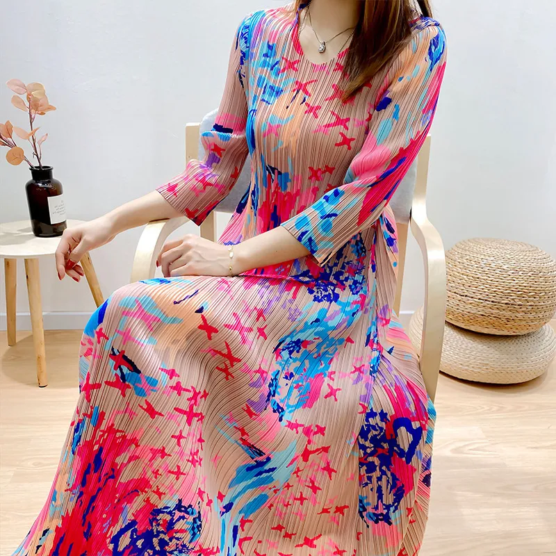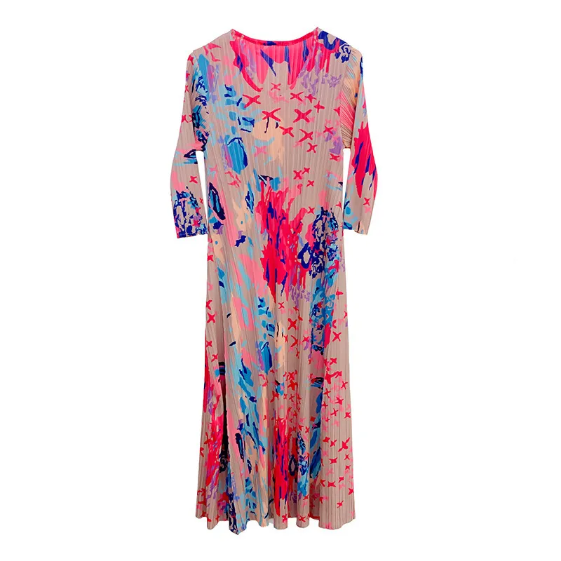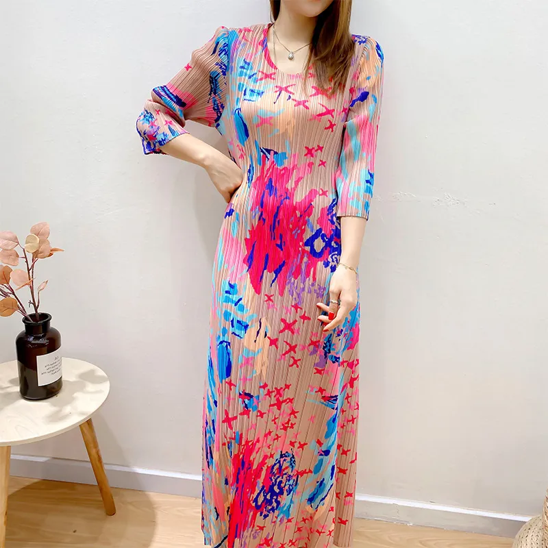 衣都精品- 2023新款時尚獨特設計暈染潑墨褶皺連衣裙