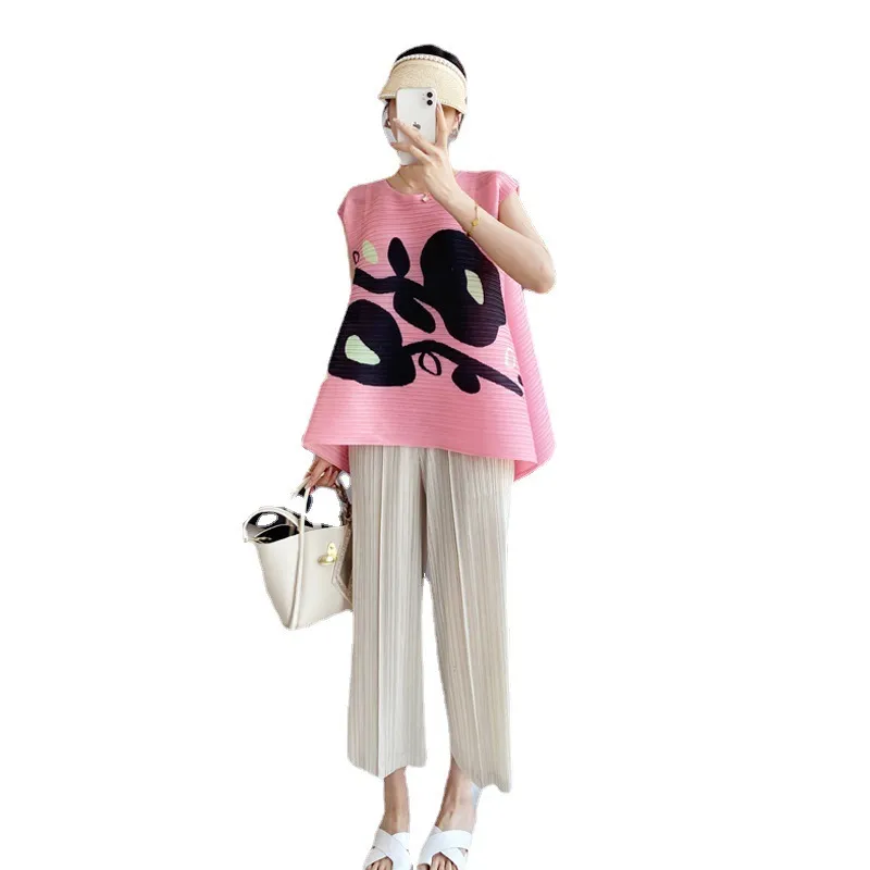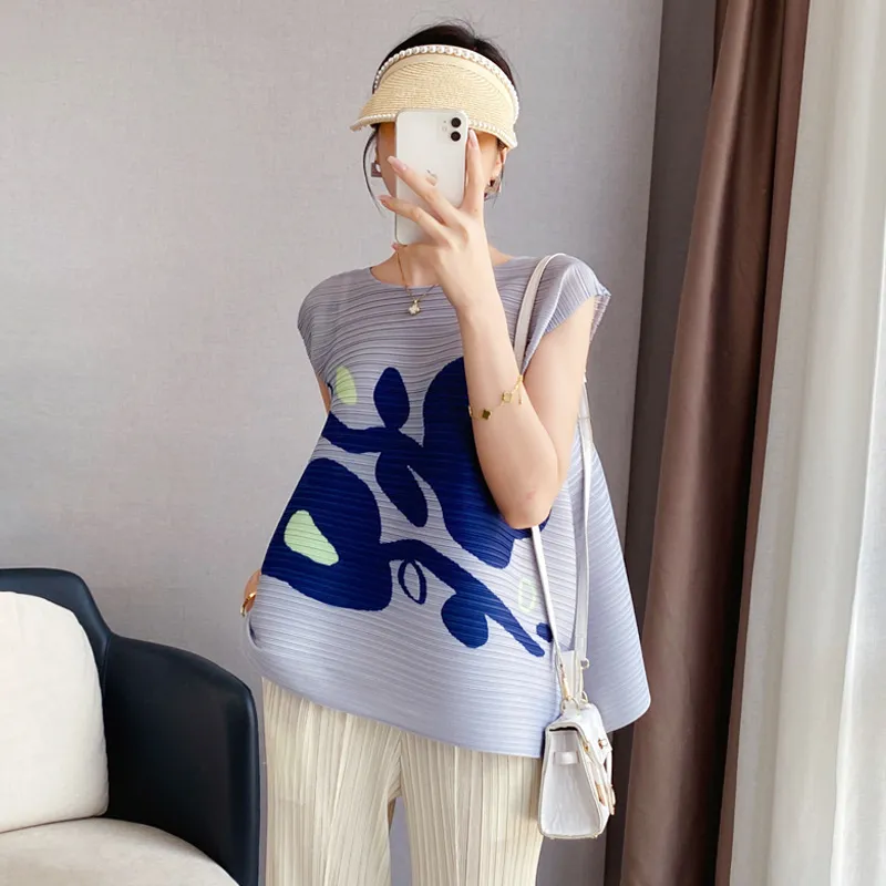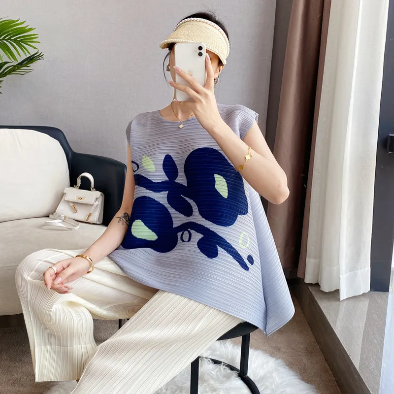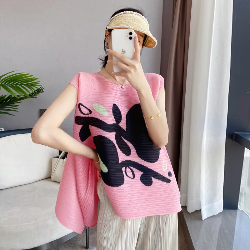 衣都精品- 2023新款洋氣減齡印花褶皺無袖上衣