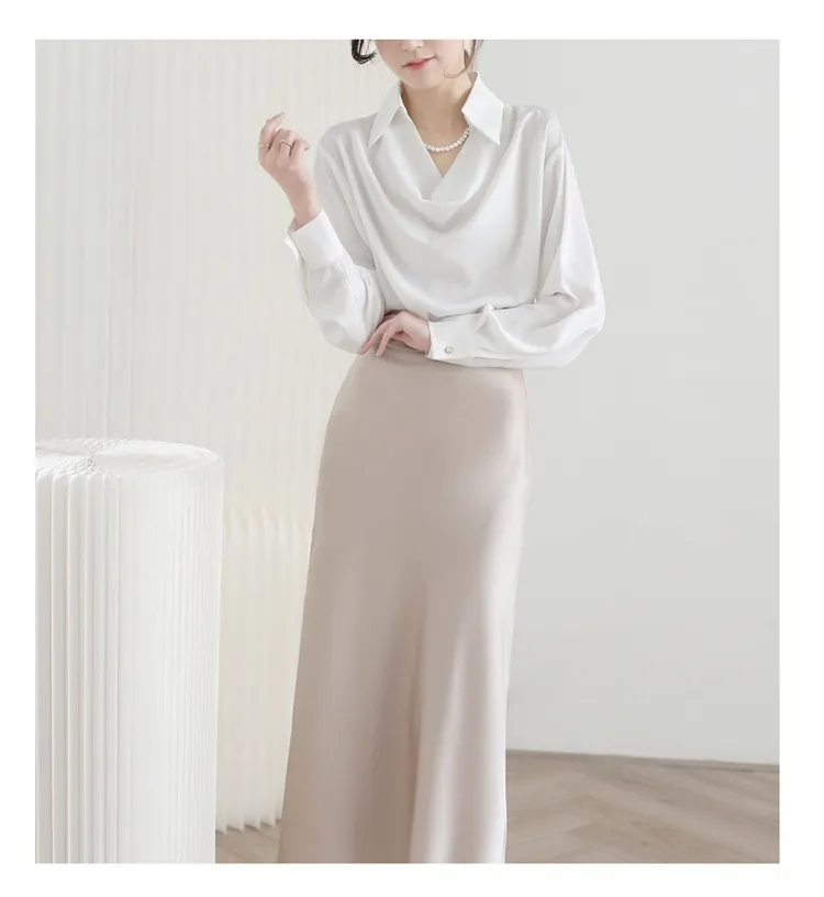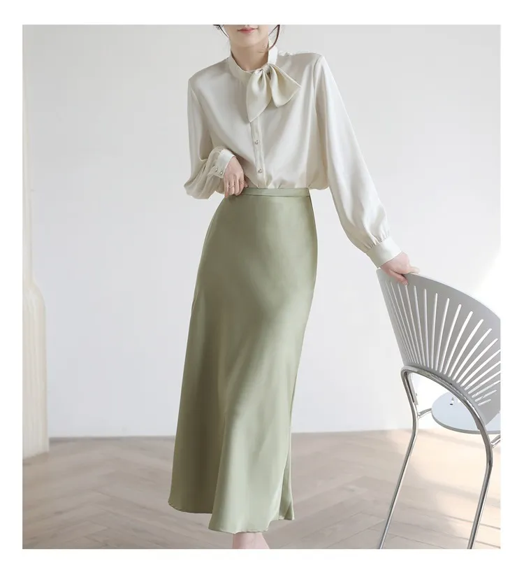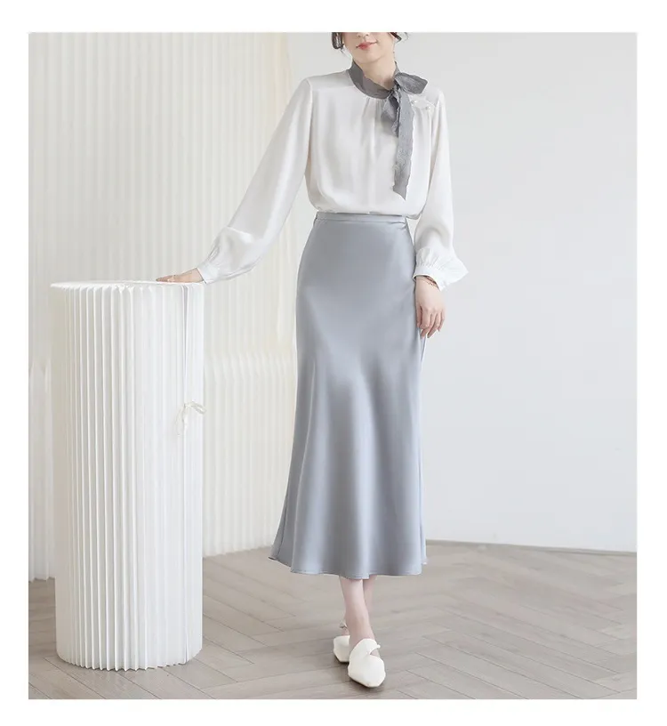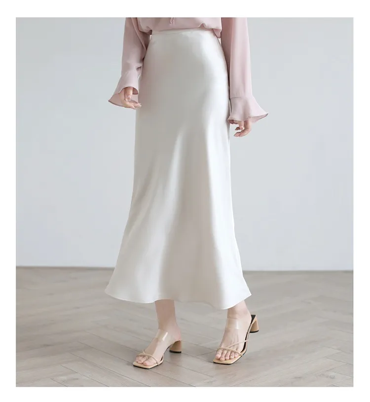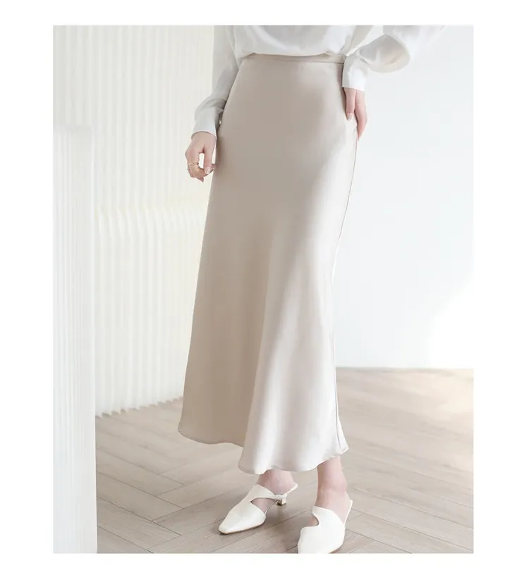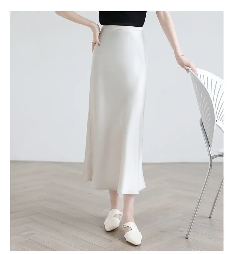衣都精品- 2023新款優雅氣質緞面高腰半身裙