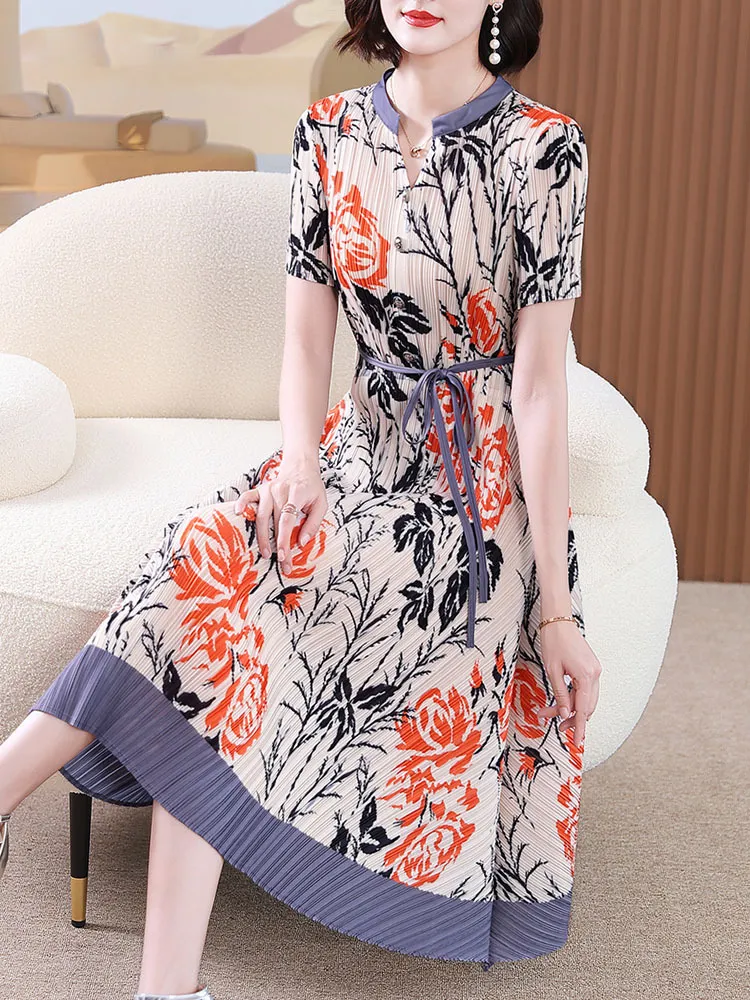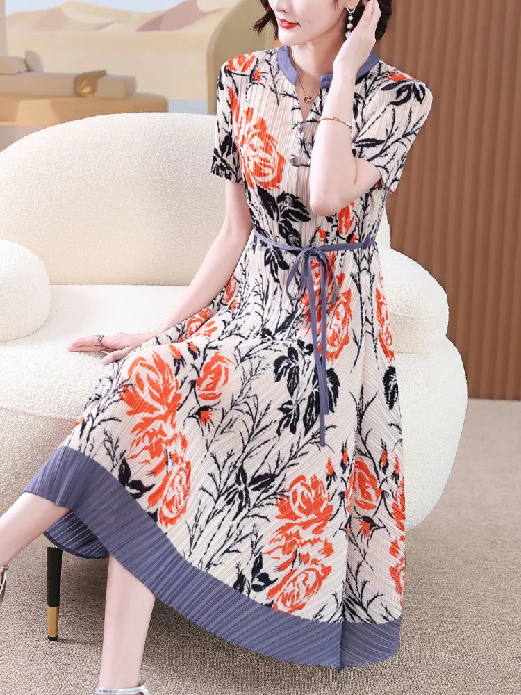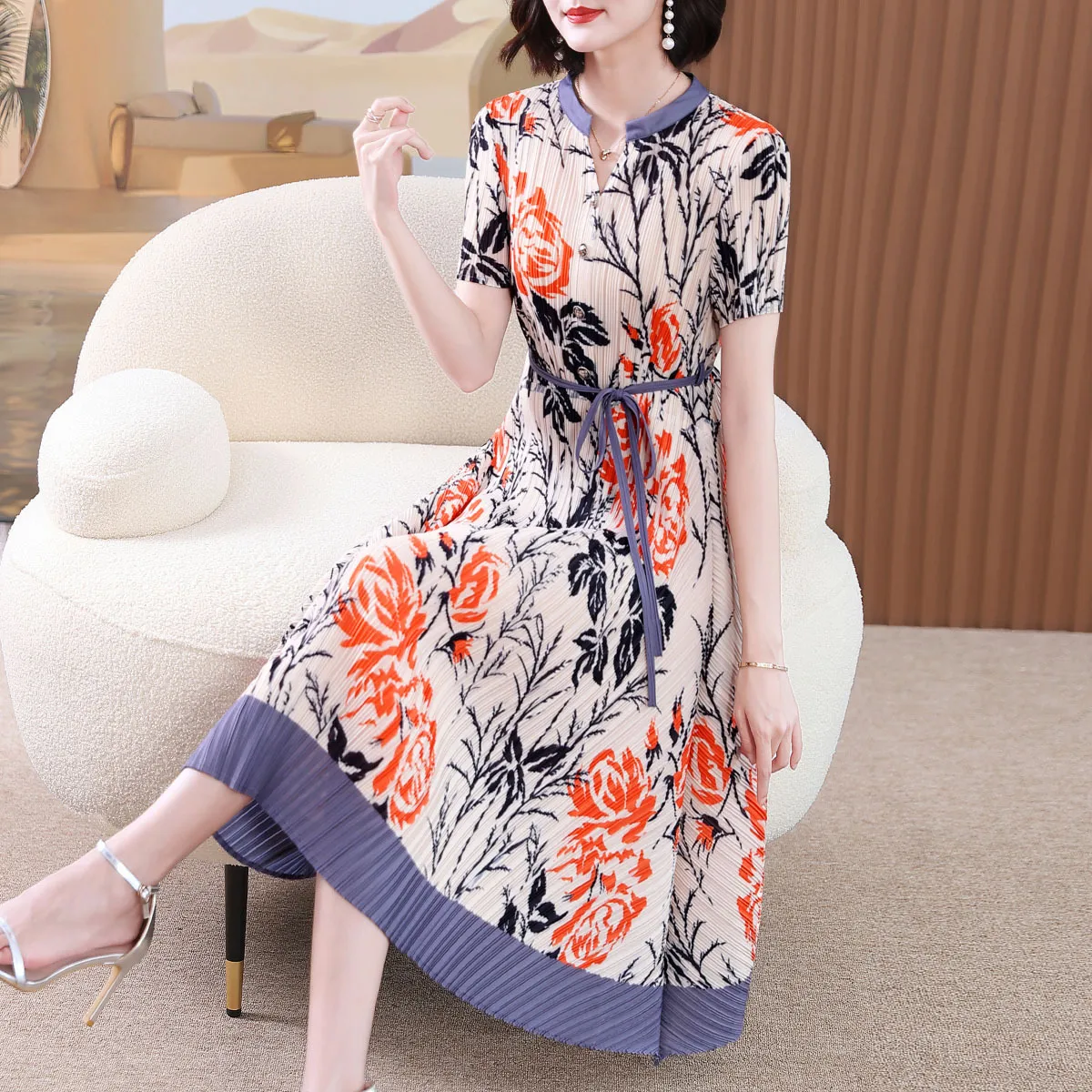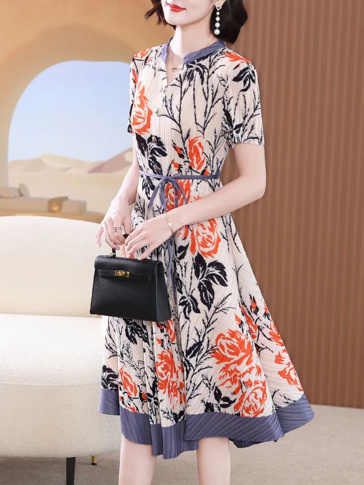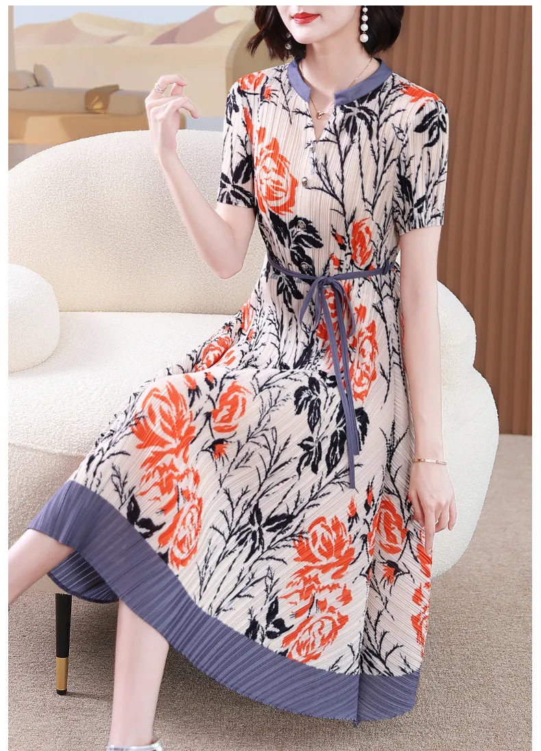 衣都精品- 2023新款撞色氣質顯瘦褶皺連衣裙