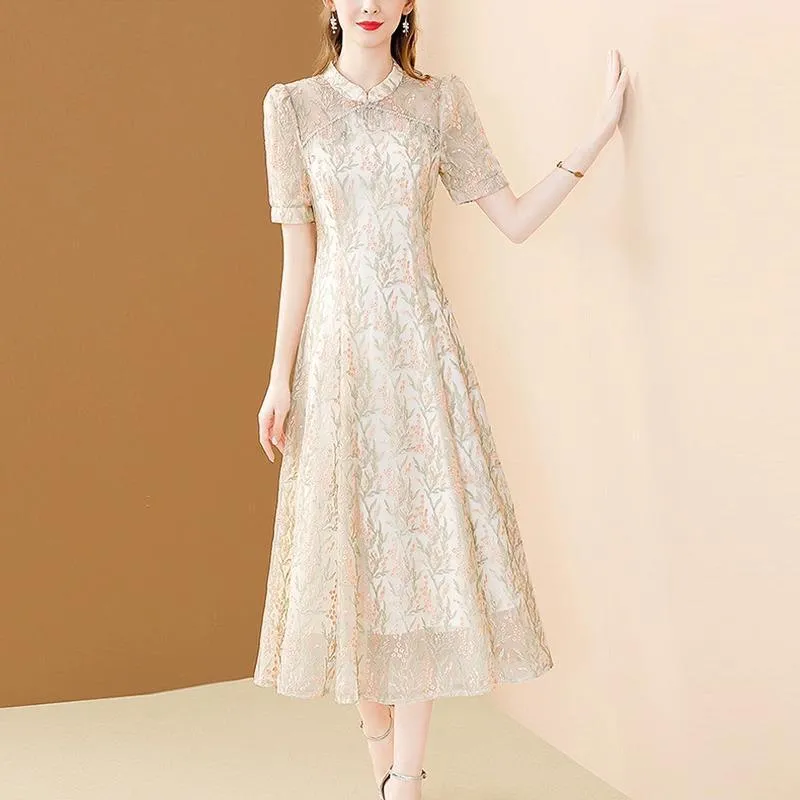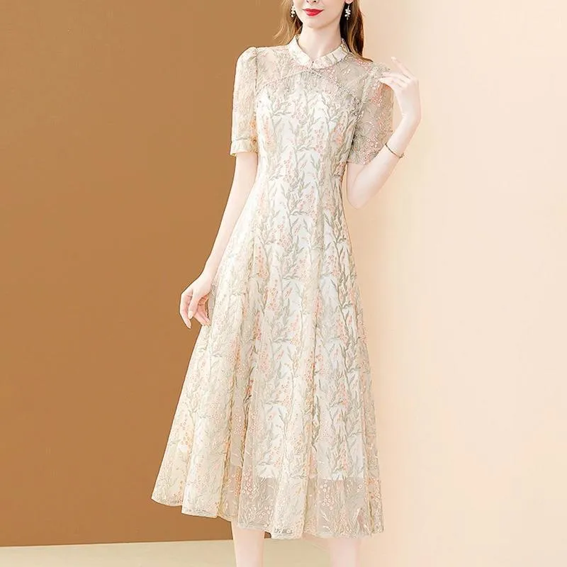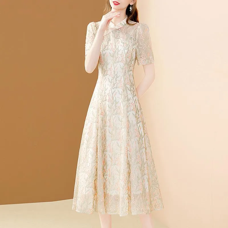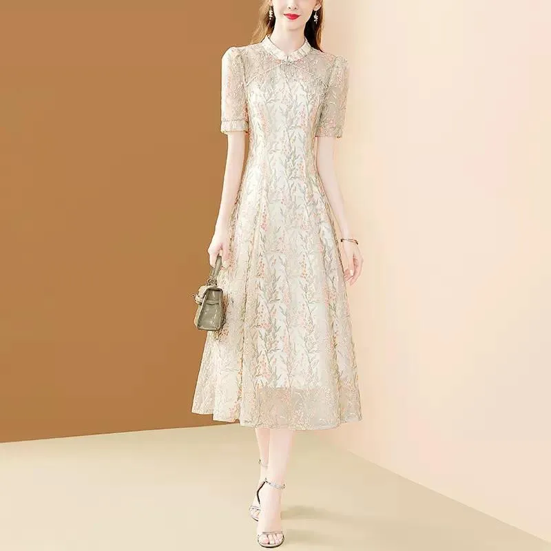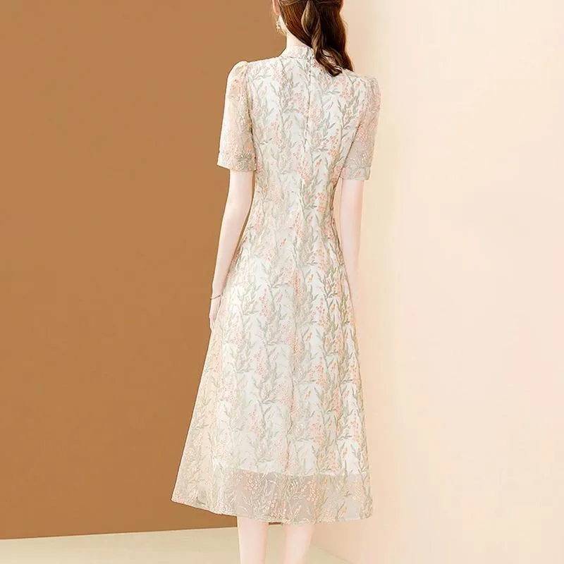 衣都精品- 2023新款高端鑲鑽時尚蕾絲繡花連衣裙