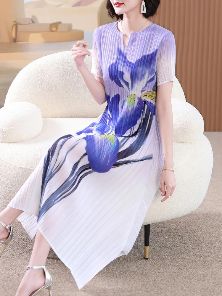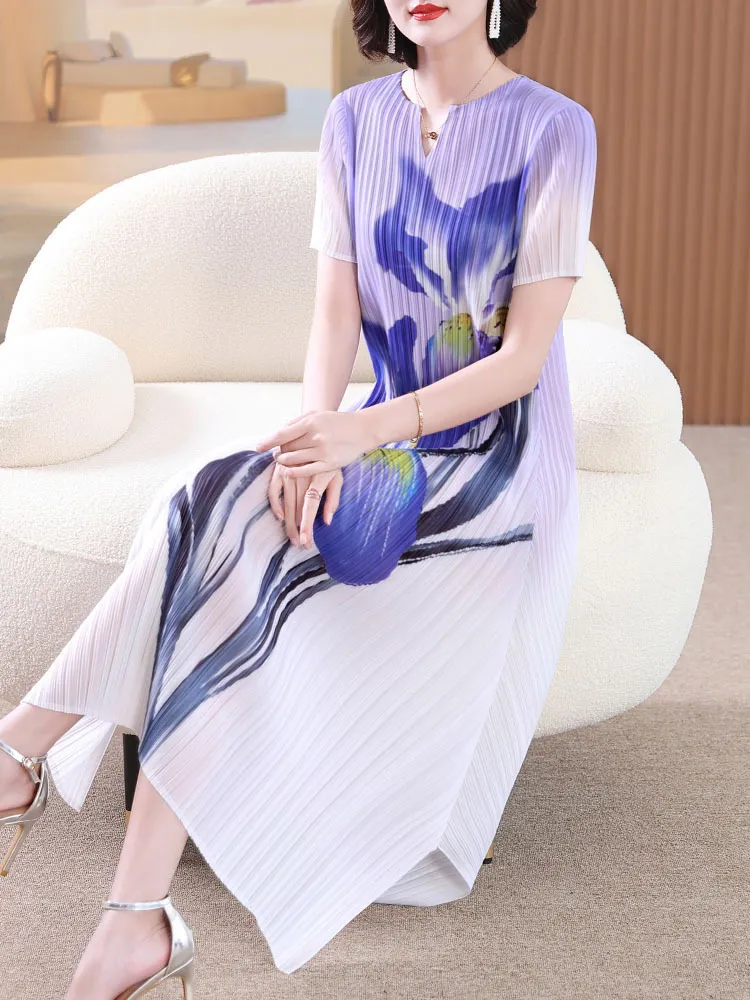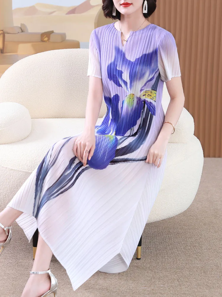 衣都精品- 2023新款高端印花短袖闊太太大碼連衣裙