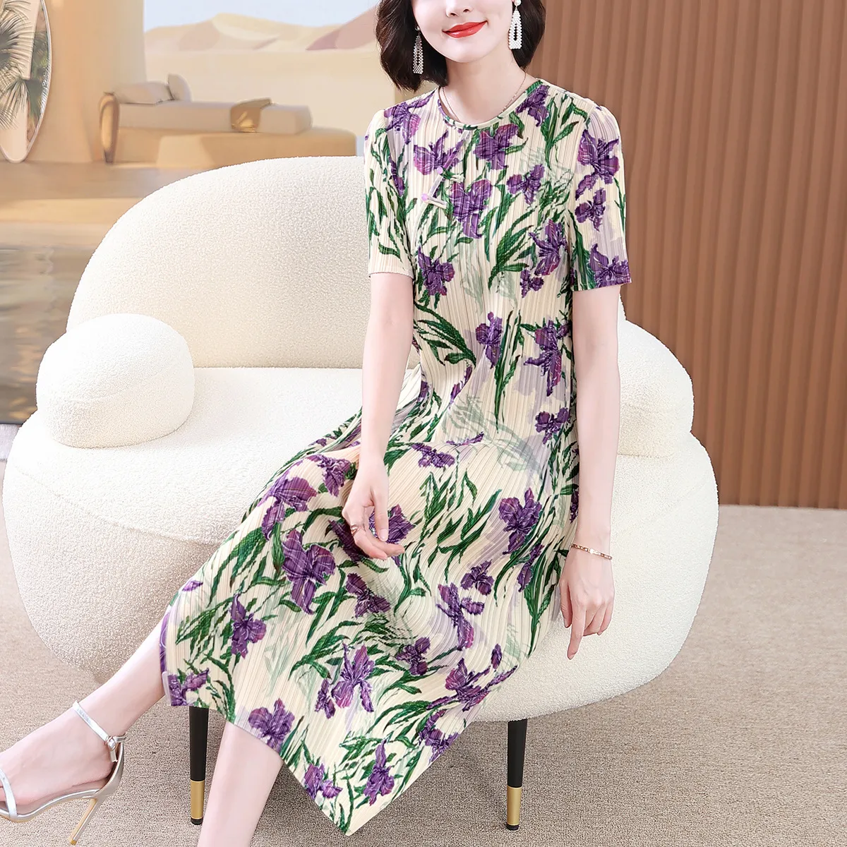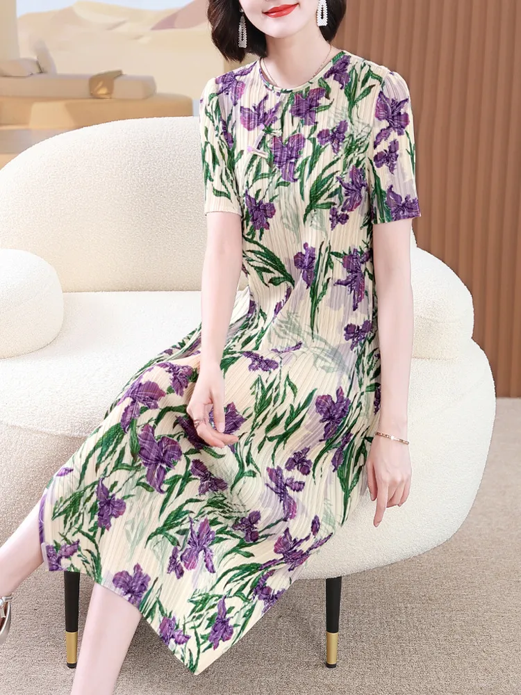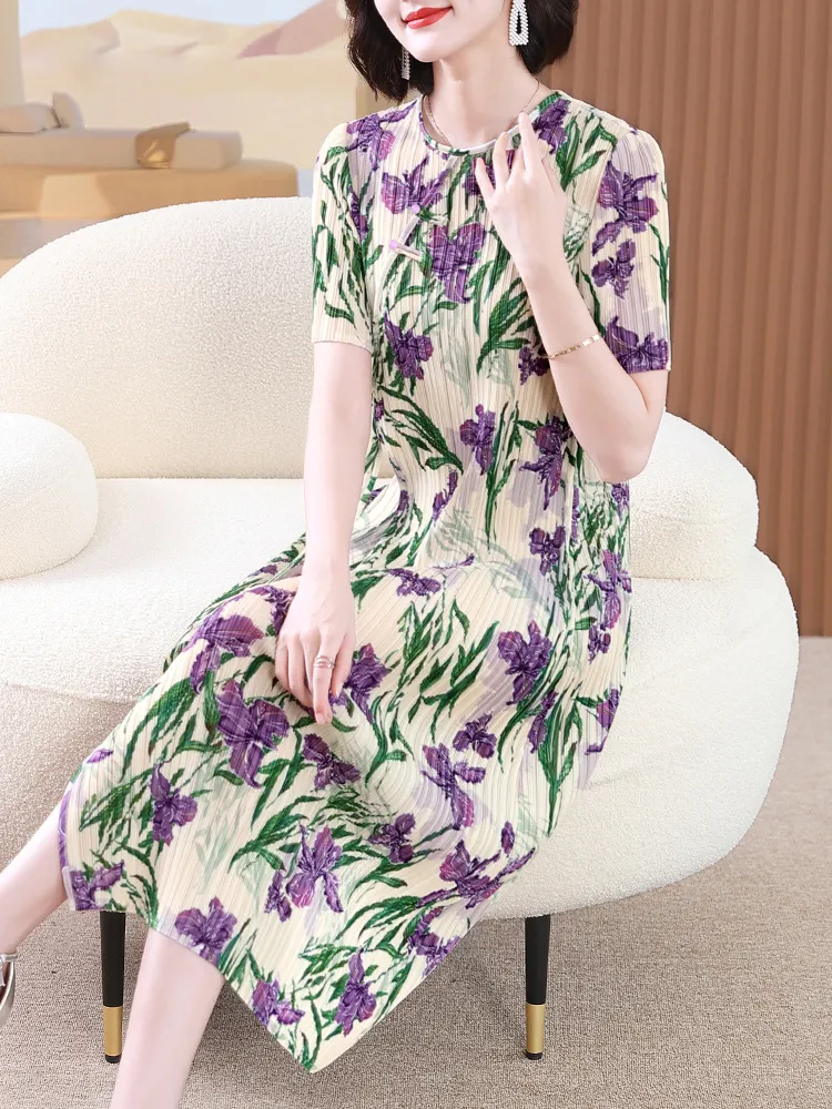衣都精品- 2023新款高端印花短袖闊太太大碼連衣裙