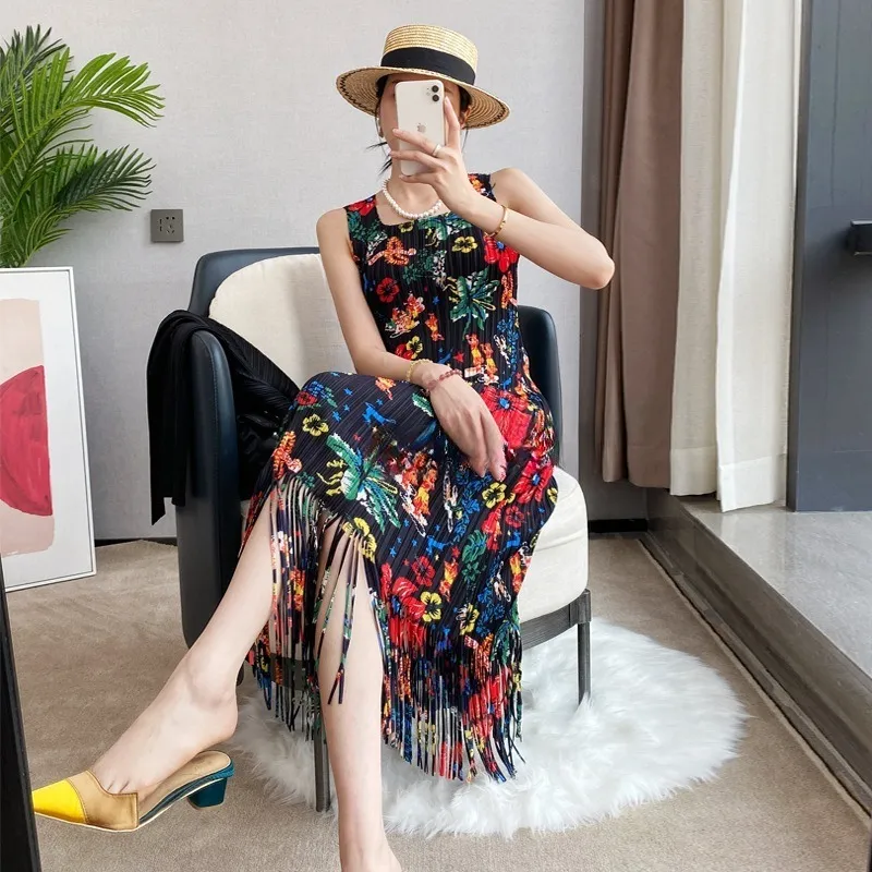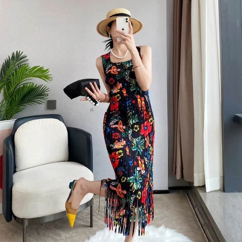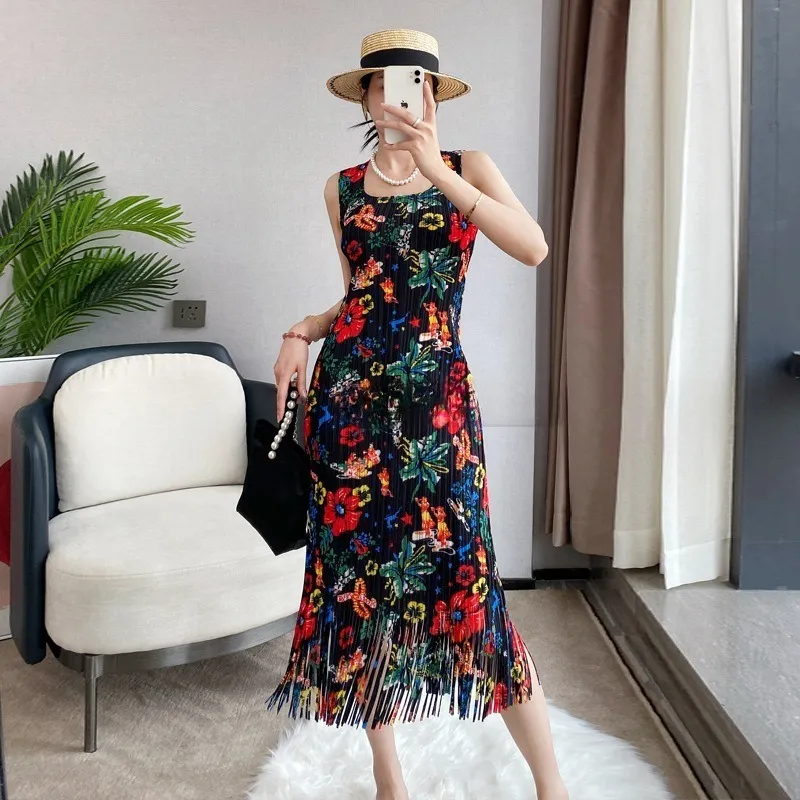 衣都精品- 2023新款印花高領旗袍式背心連衣裙