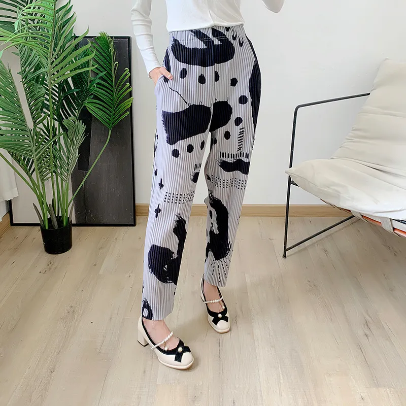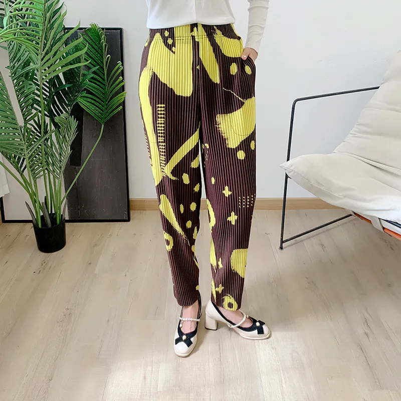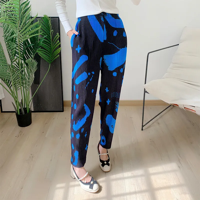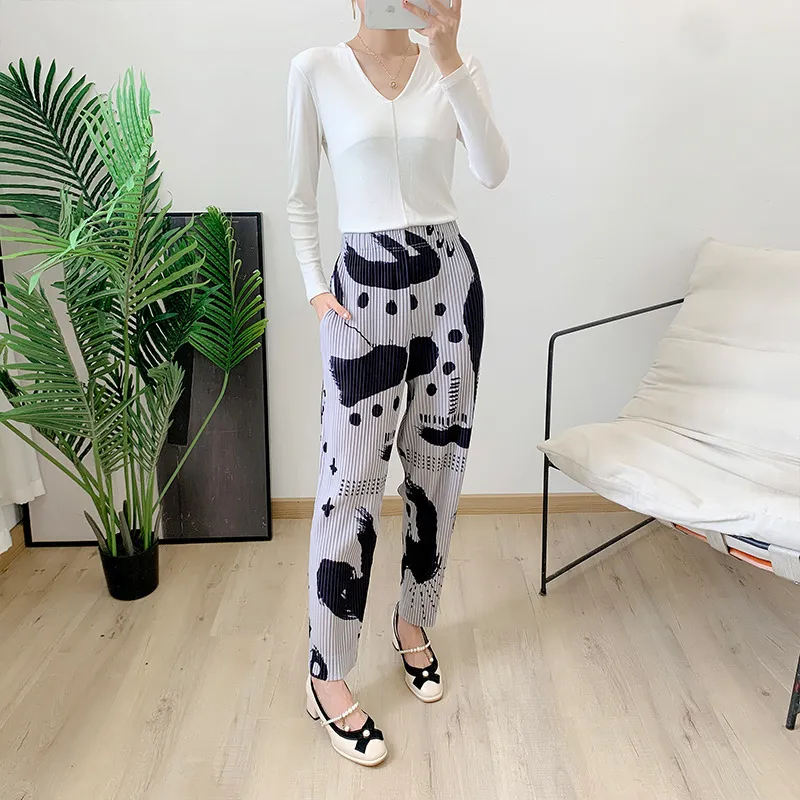 衣都精品- 2023新款顯瘦印花九分褶皺哈倫褲