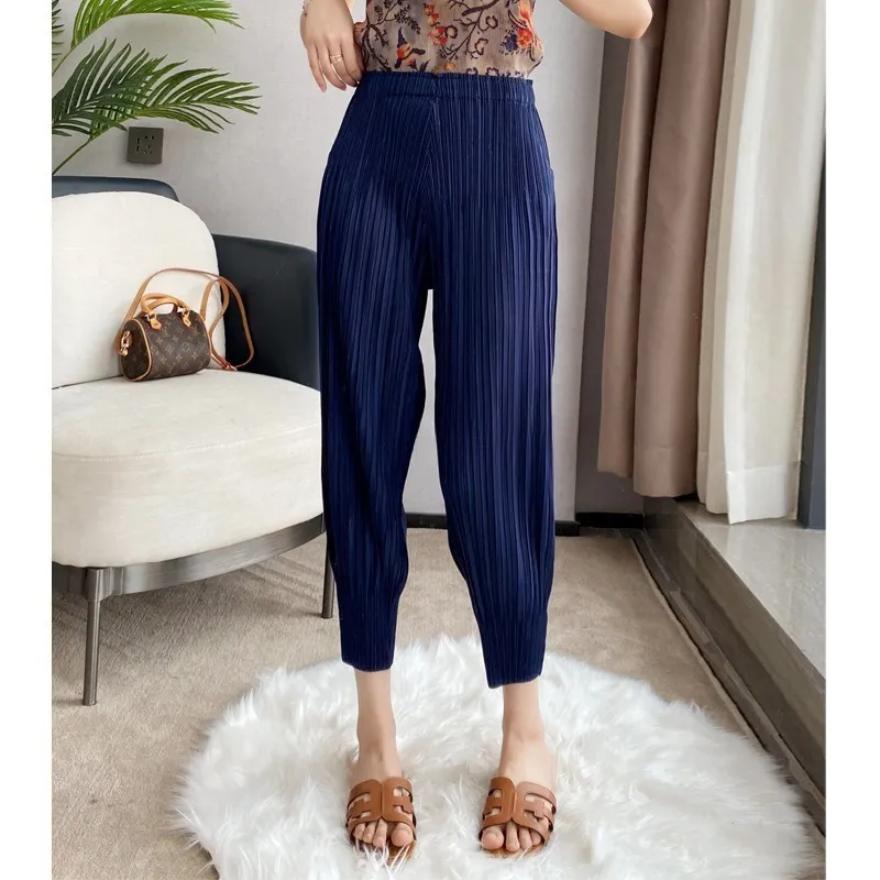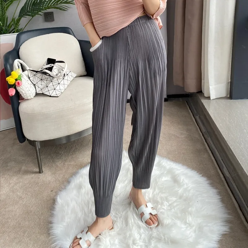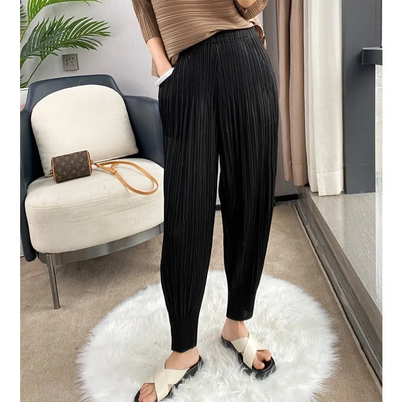 衣都精品- 2023新款薄款九分垂感顯瘦褶皺寬鬆哈倫褲