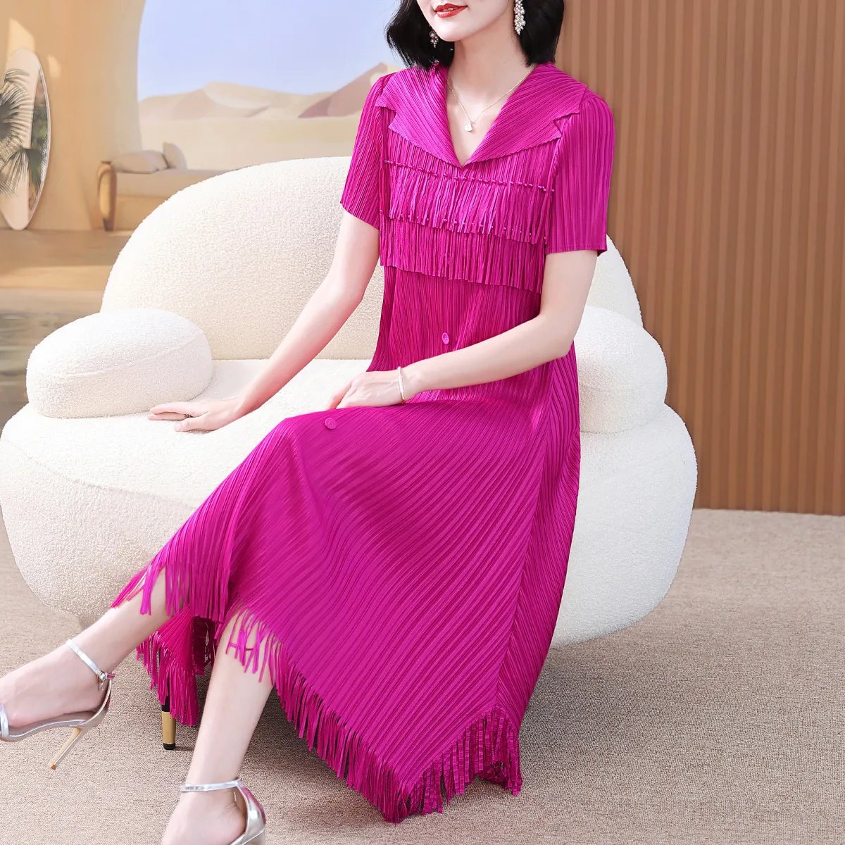 衣都精品- 2023新款高端大碼顯瘦氣質流蘇連衣裙
