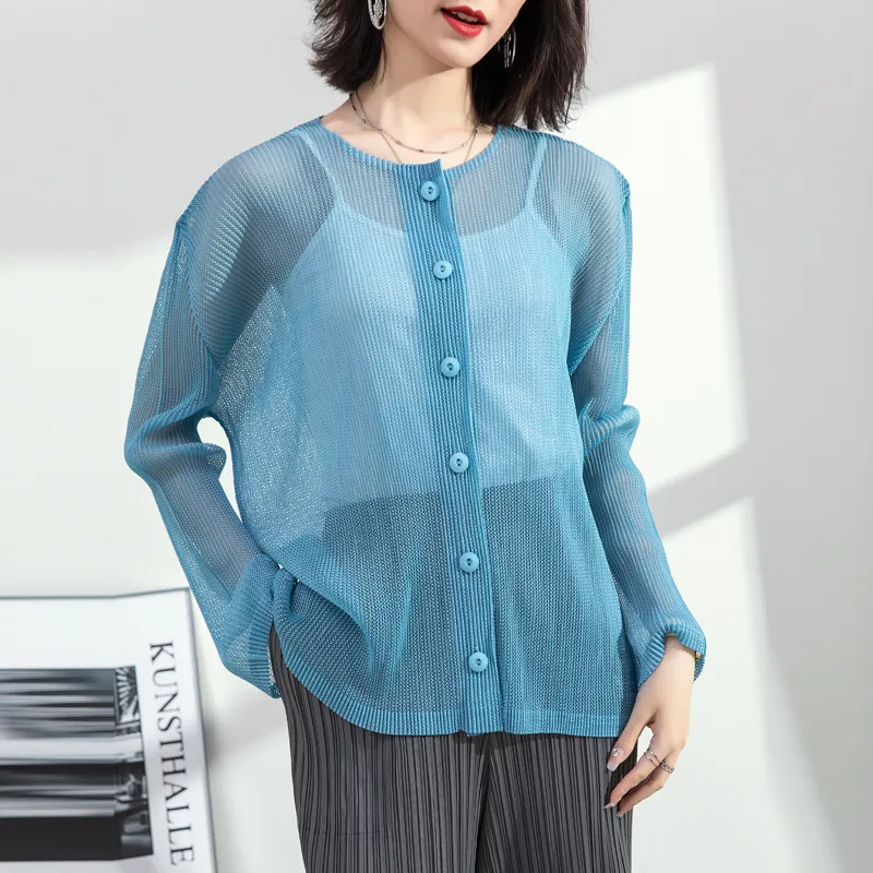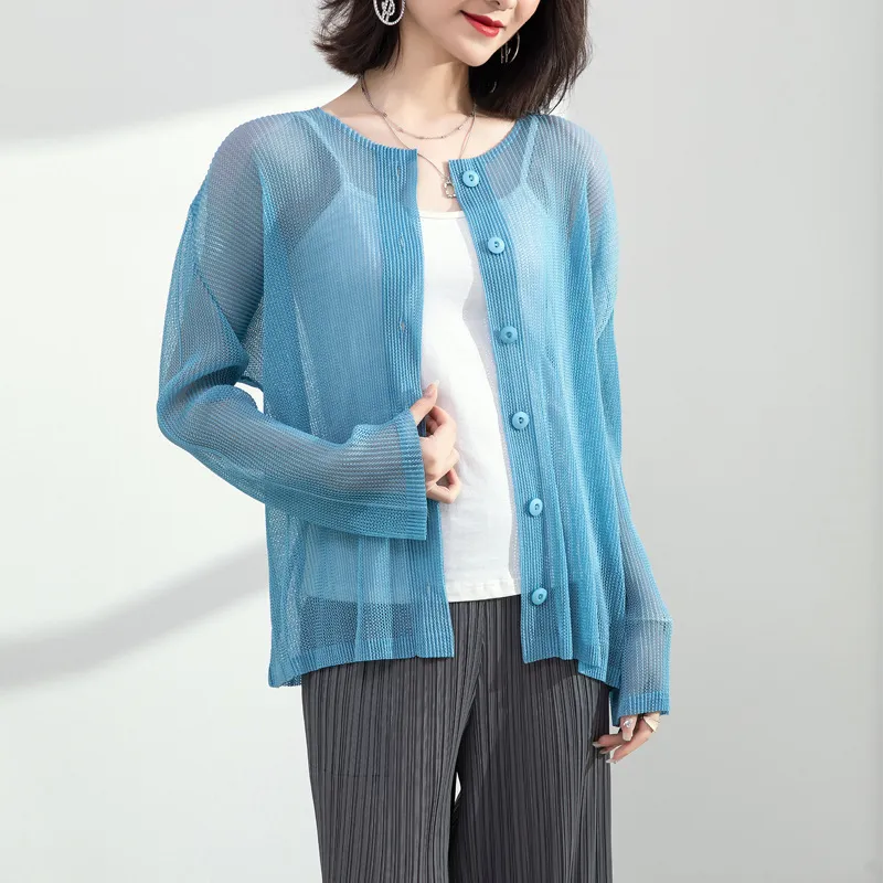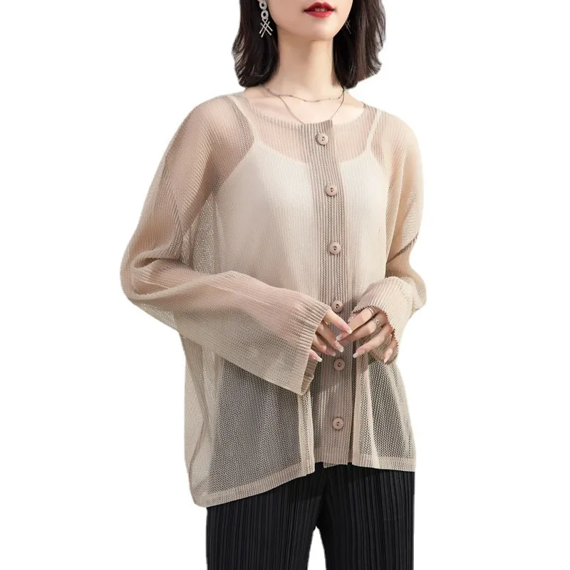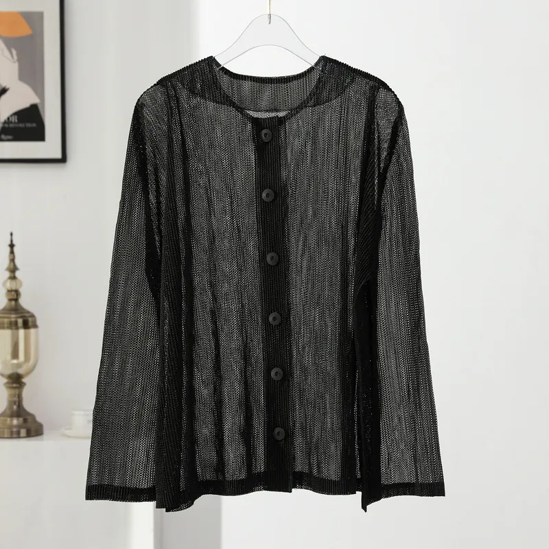 衣都精品- 2023新款時尚寬鬆網紗單排扣防曬休閒外套