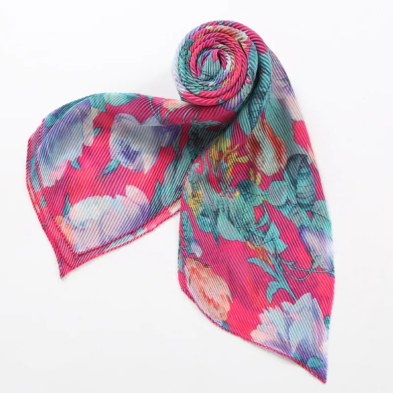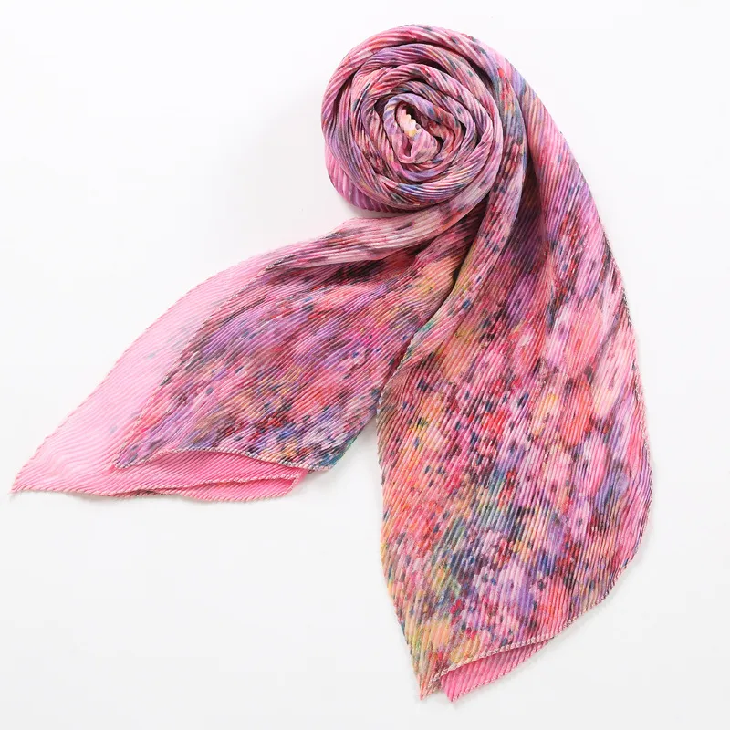 衣都精品- 2023新款百搭新潮褶皺印花雙層圍巾