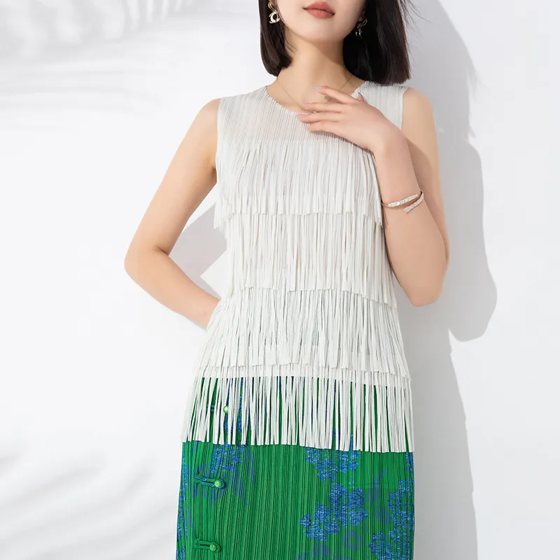 衣都精品- 2023新款高端褶皺蝴蝶印花不規則無袖上衣