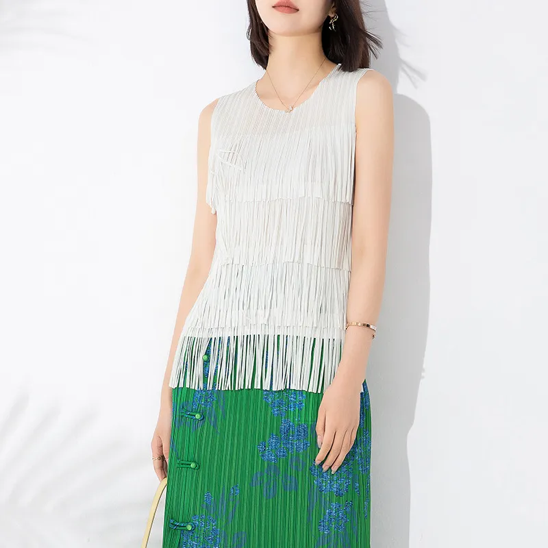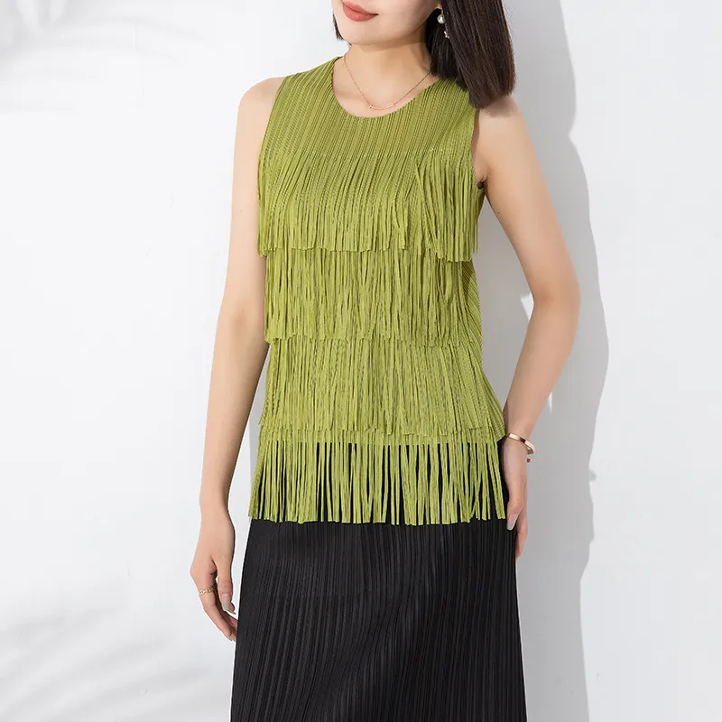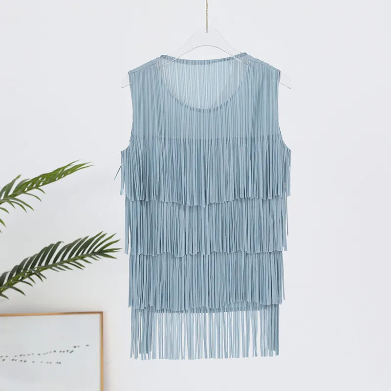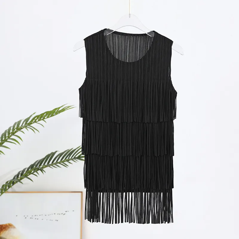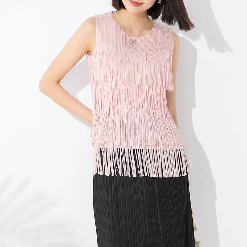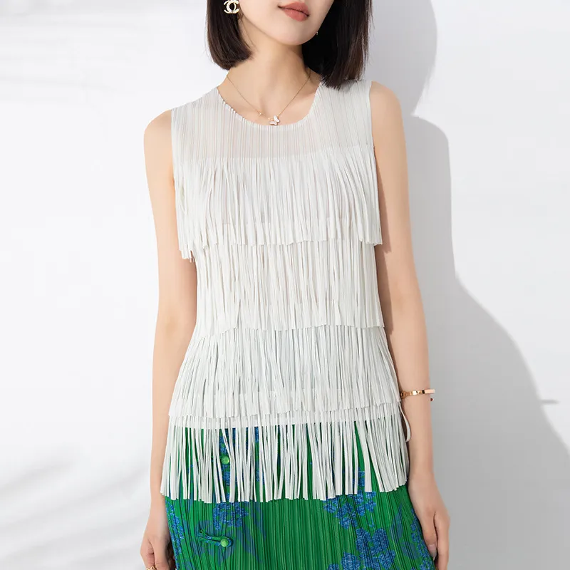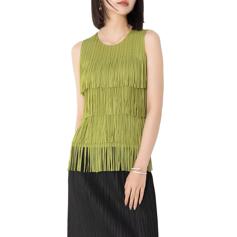 衣都精品- 2023新款套頭圓領設計感顯瘦流蘇上衣