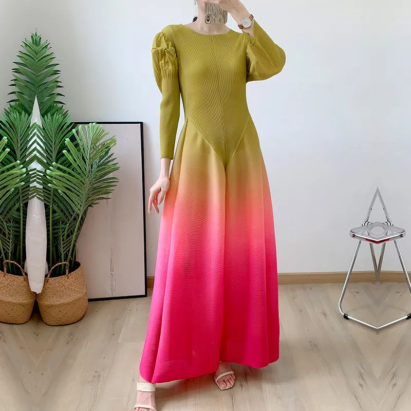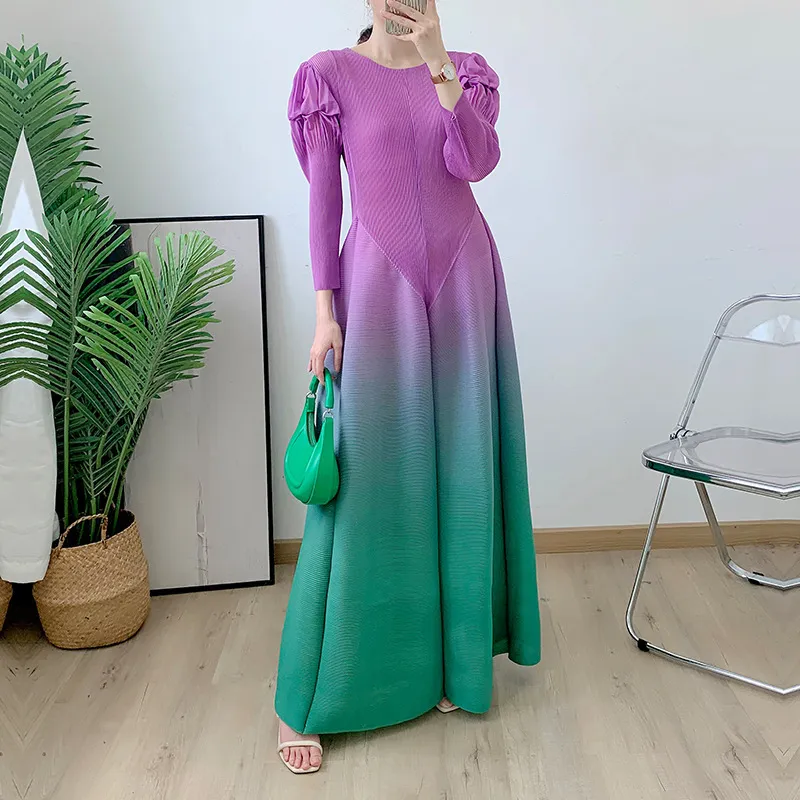 衣都精品- 2023新款花褶袖收腰顯瘦褶皺漸變燈籠裙