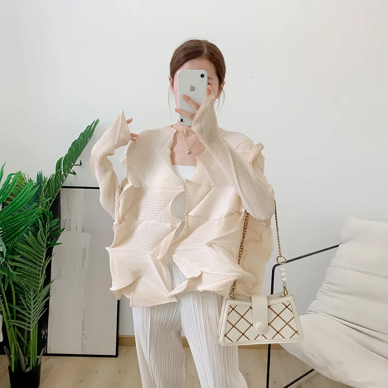 衣都精品- 2023新款百合褶皺手抓亂褶時尚薄款外套