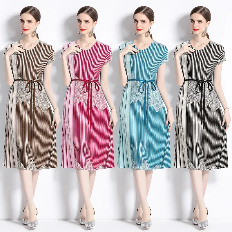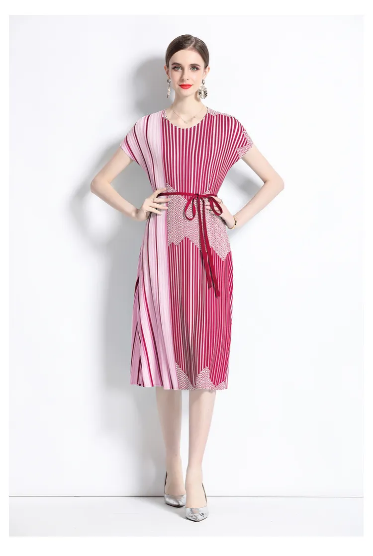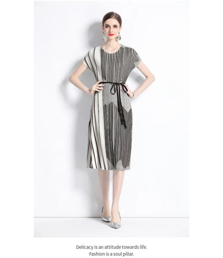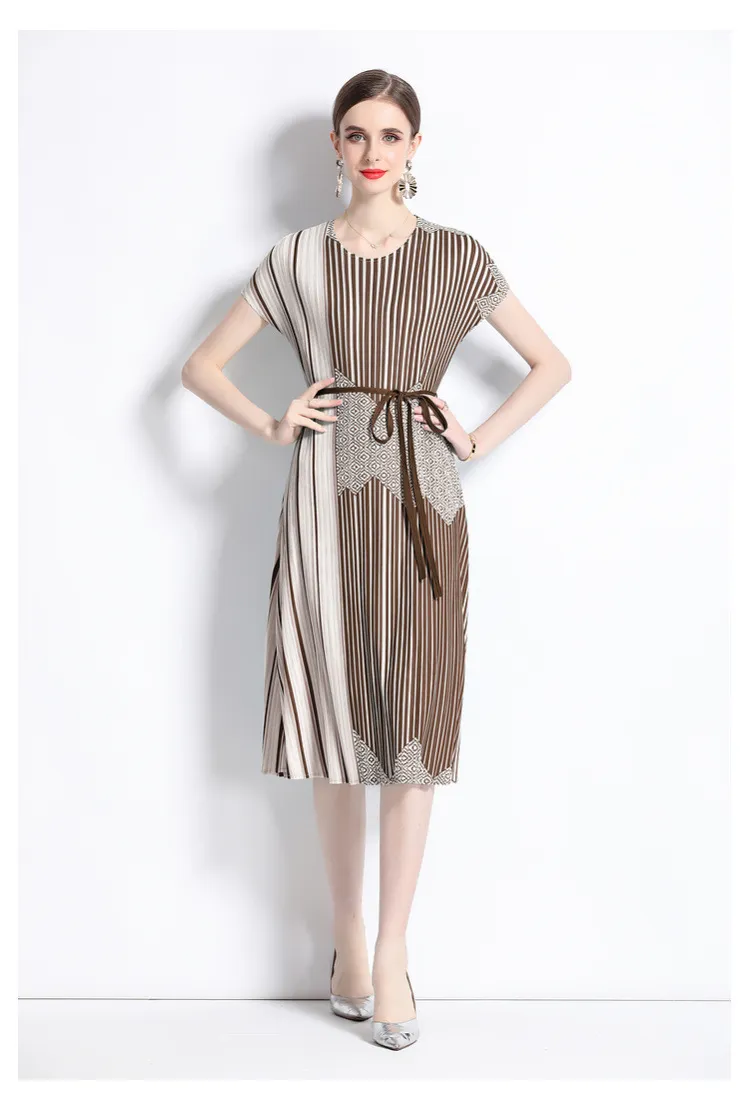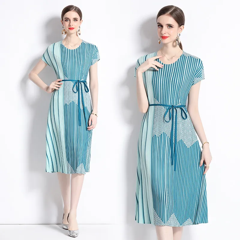 衣都精品- 2023新款氣質復古中袖百褶連衣裙