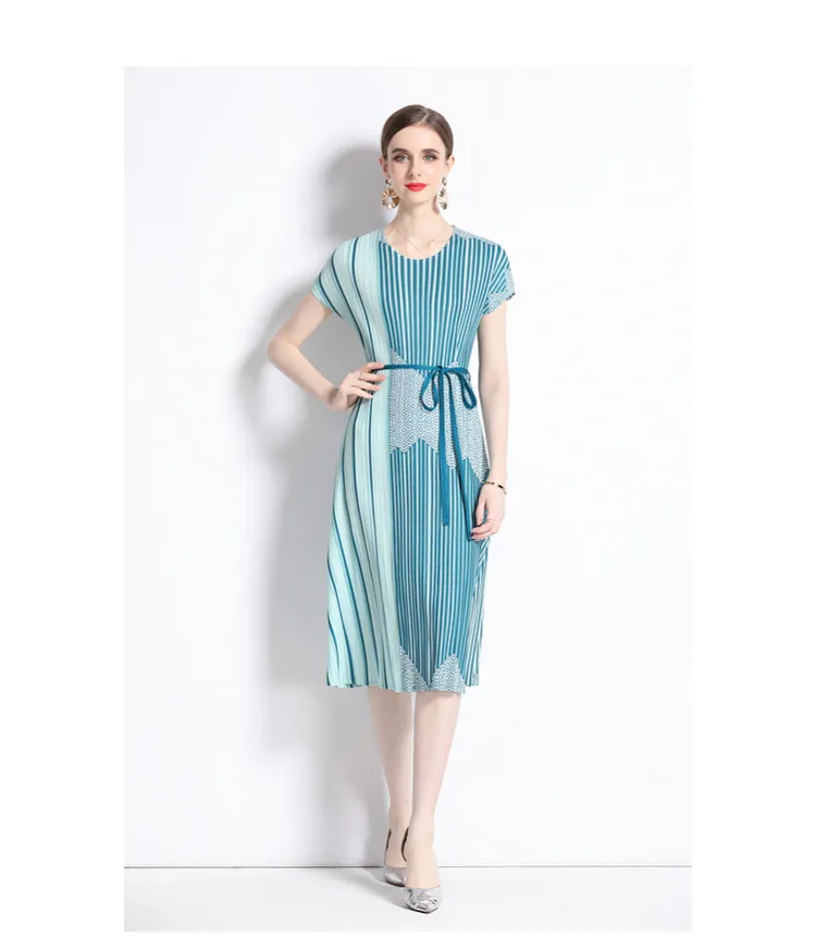 衣都精品- 2023新款短袖長裙大碼顯瘦褶皺連衣裙