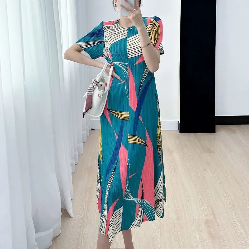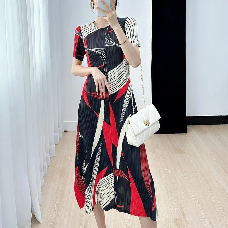 衣都精品- 2023新款高端時尚氣質修身印花連衣裙