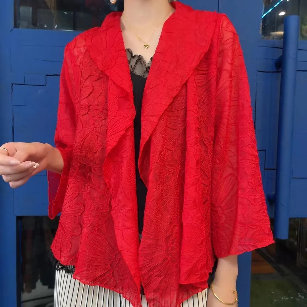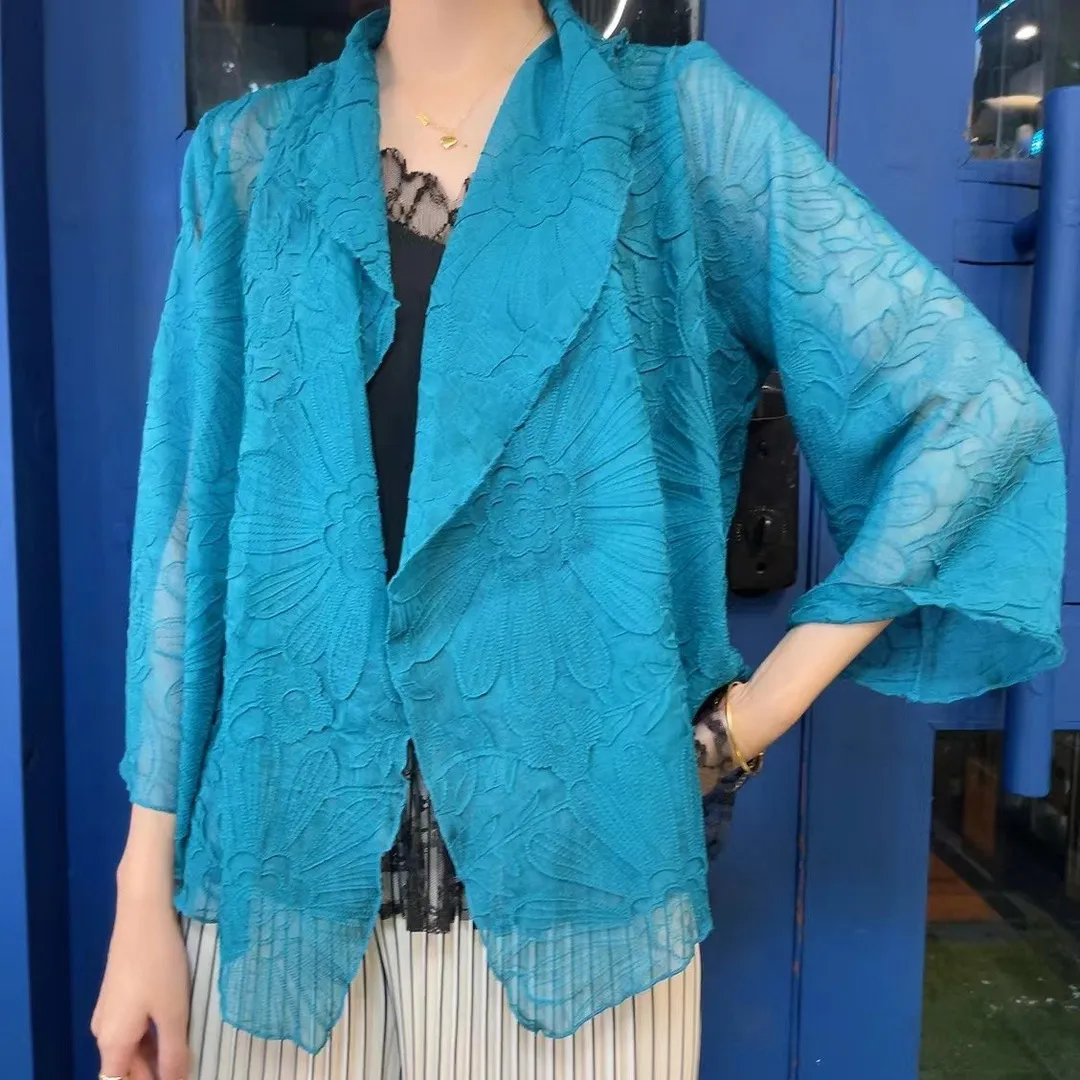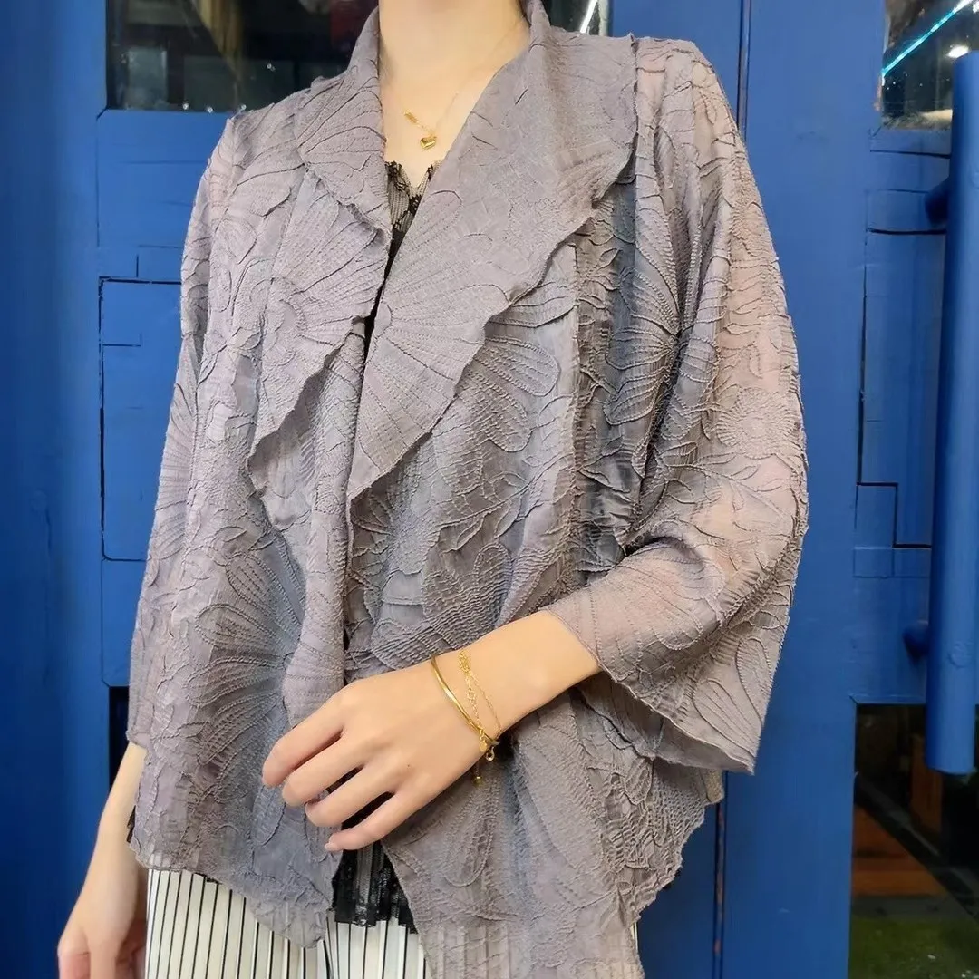 衣都精品- 2023新款氣質顯瘦薄款寬鬆七分袖褶皺外套