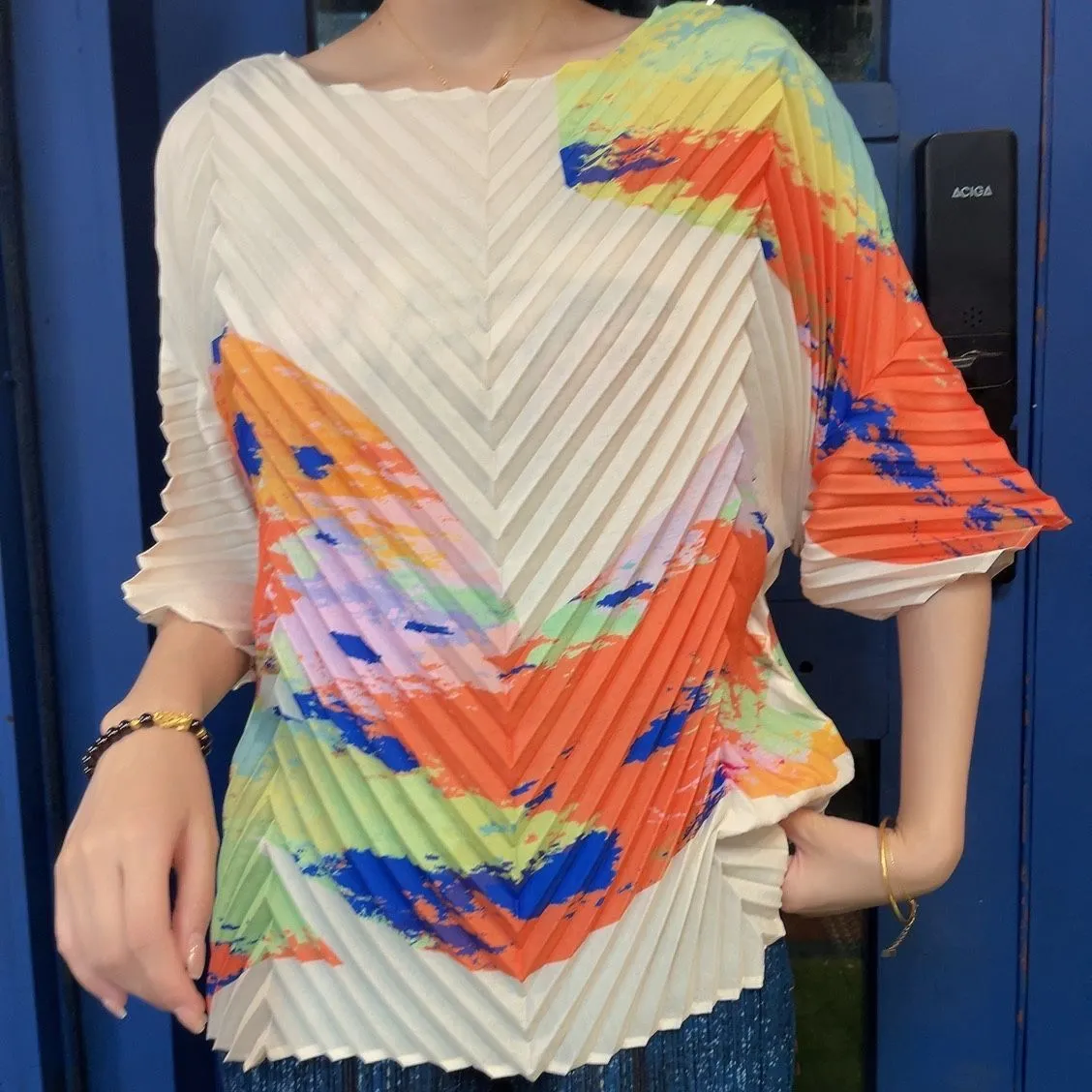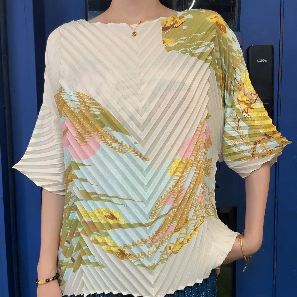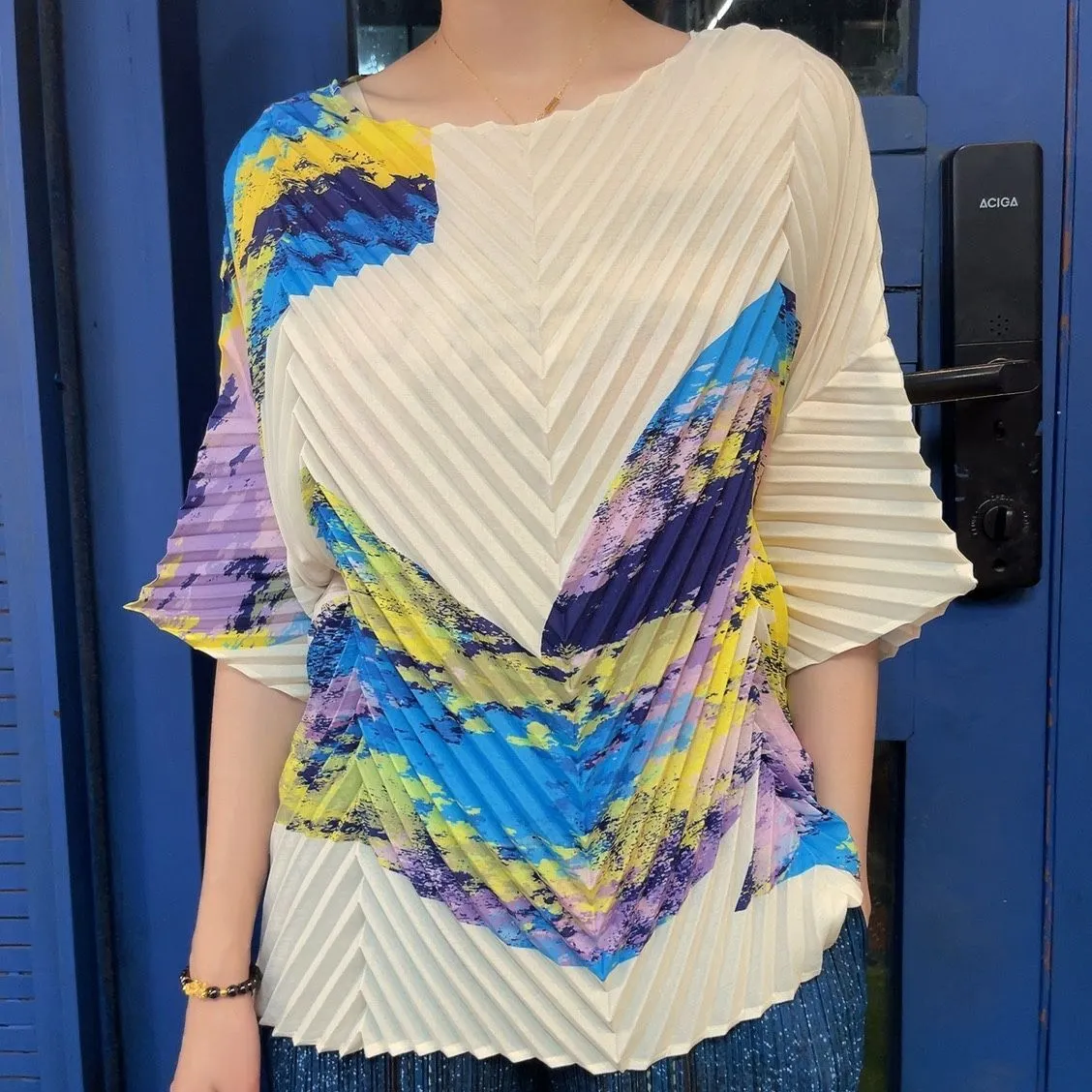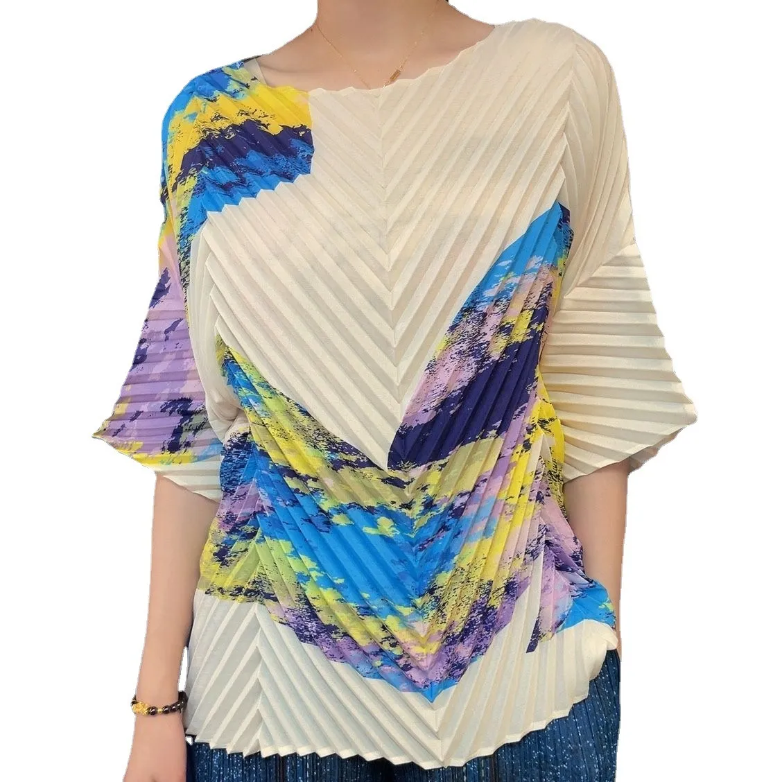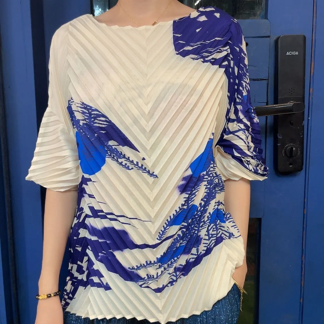 衣都精品- 2023新款超薄透氣手工褶短袖圓領上衣