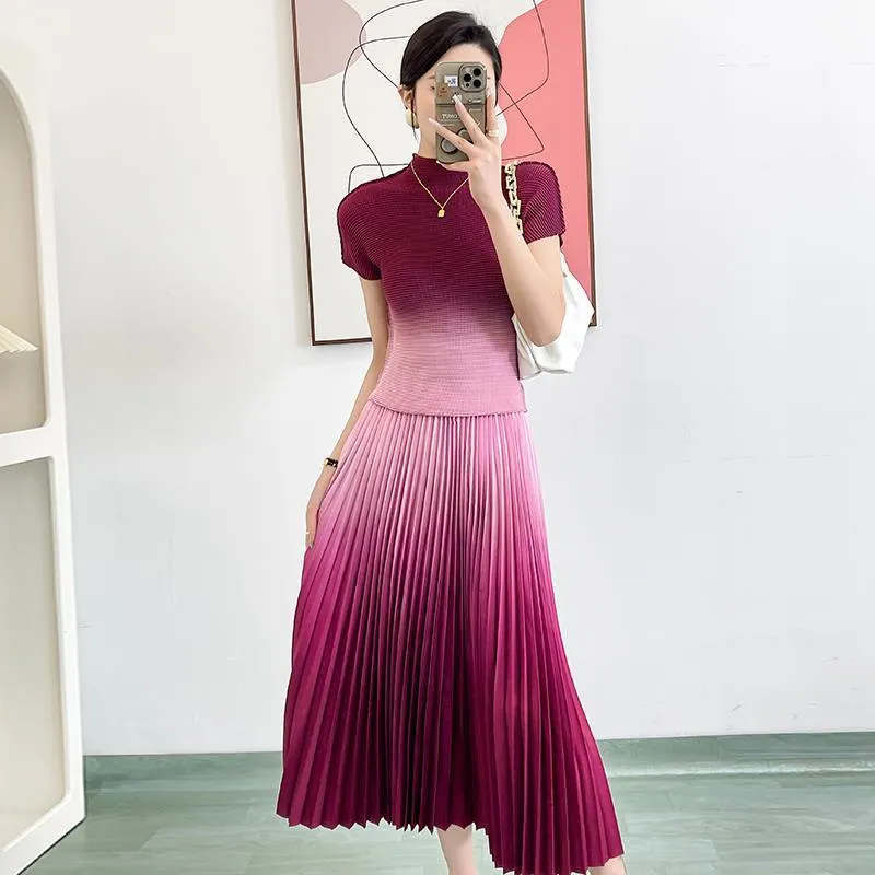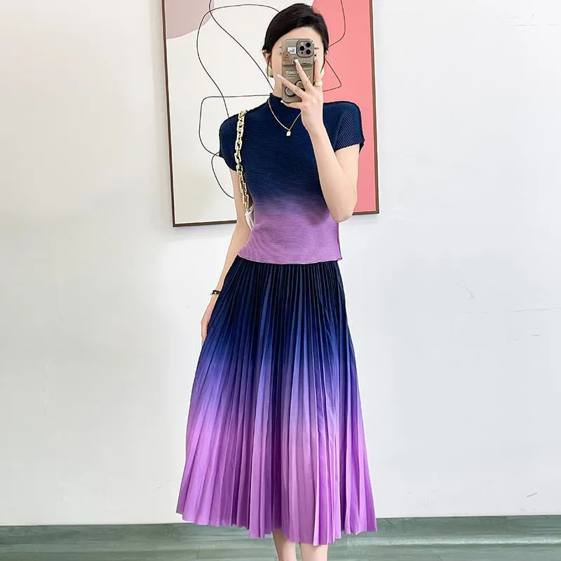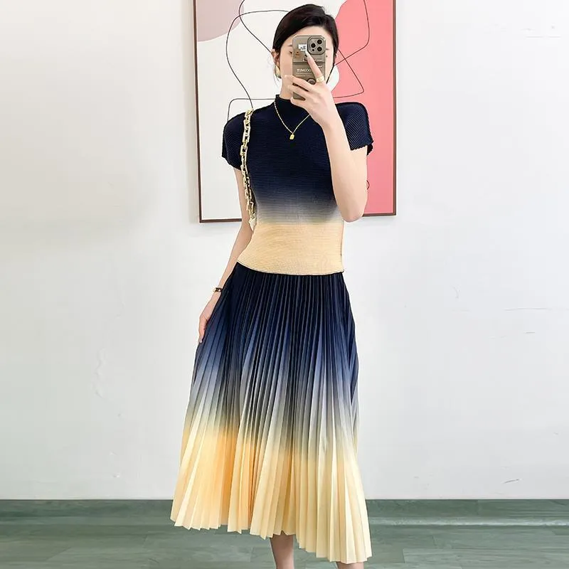 衣都精品- 2023新款時尚修身上衣+印花百褶半身裙二件套套裝