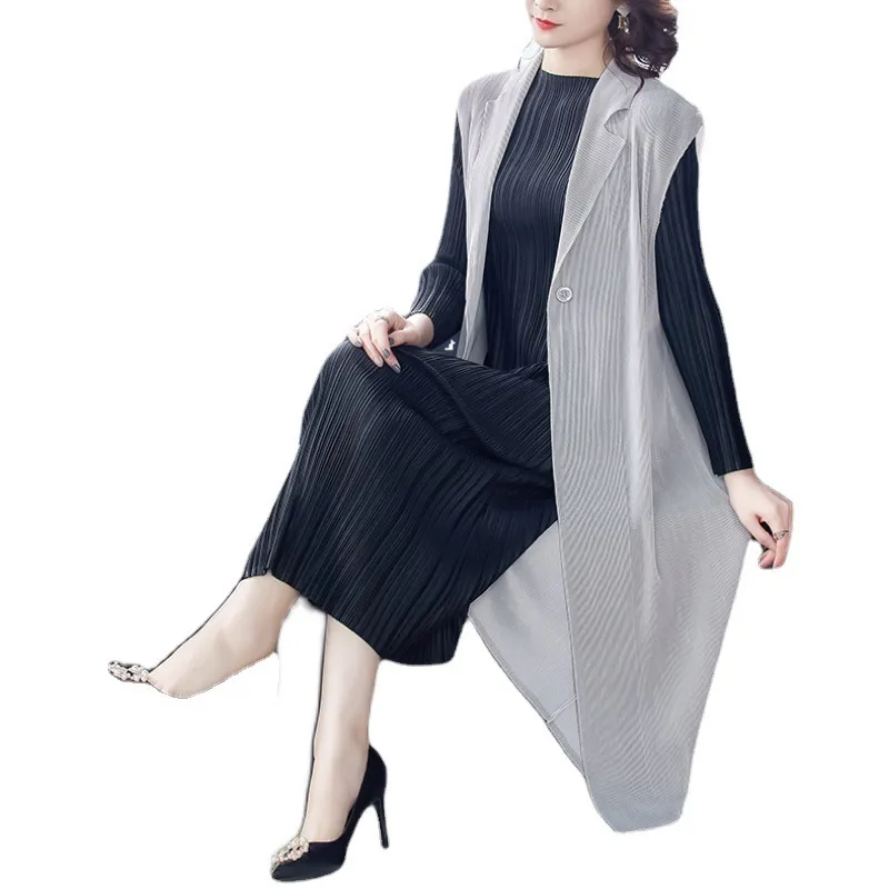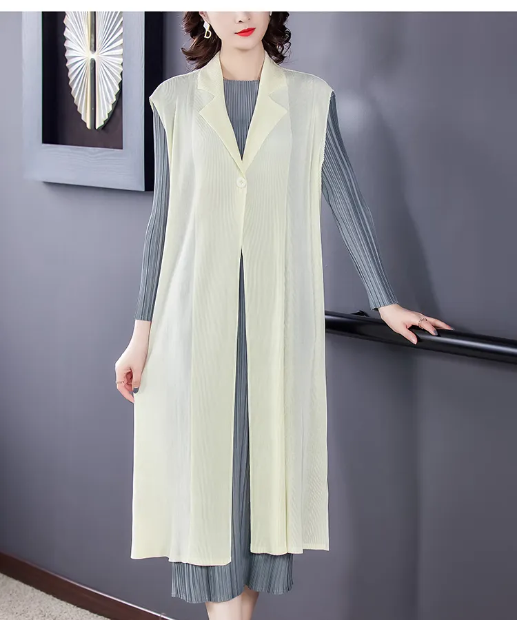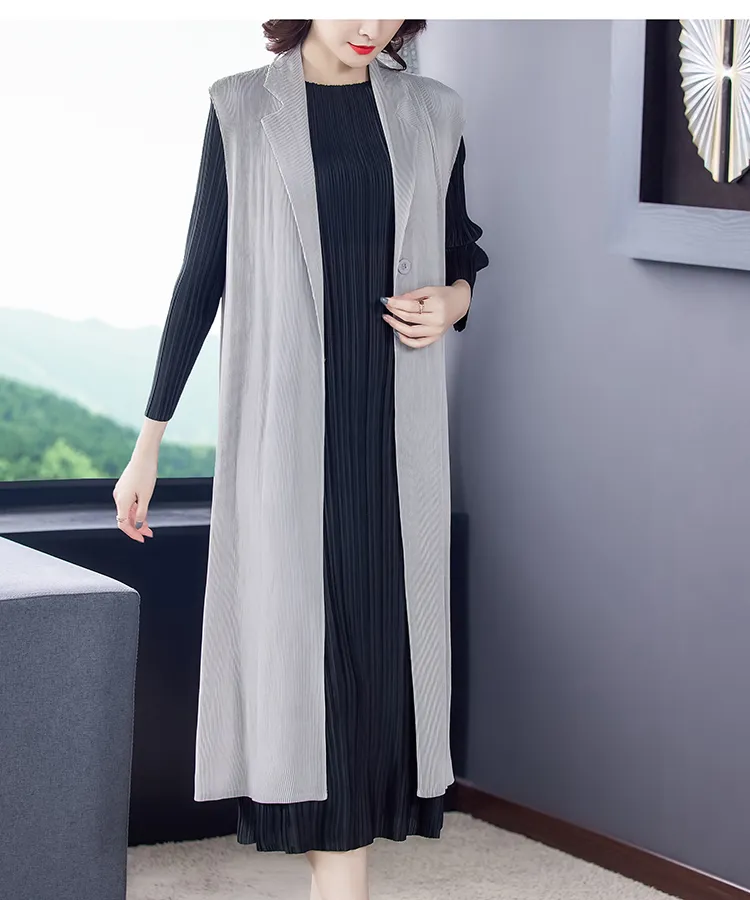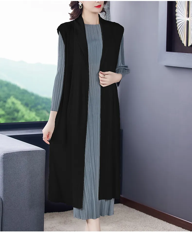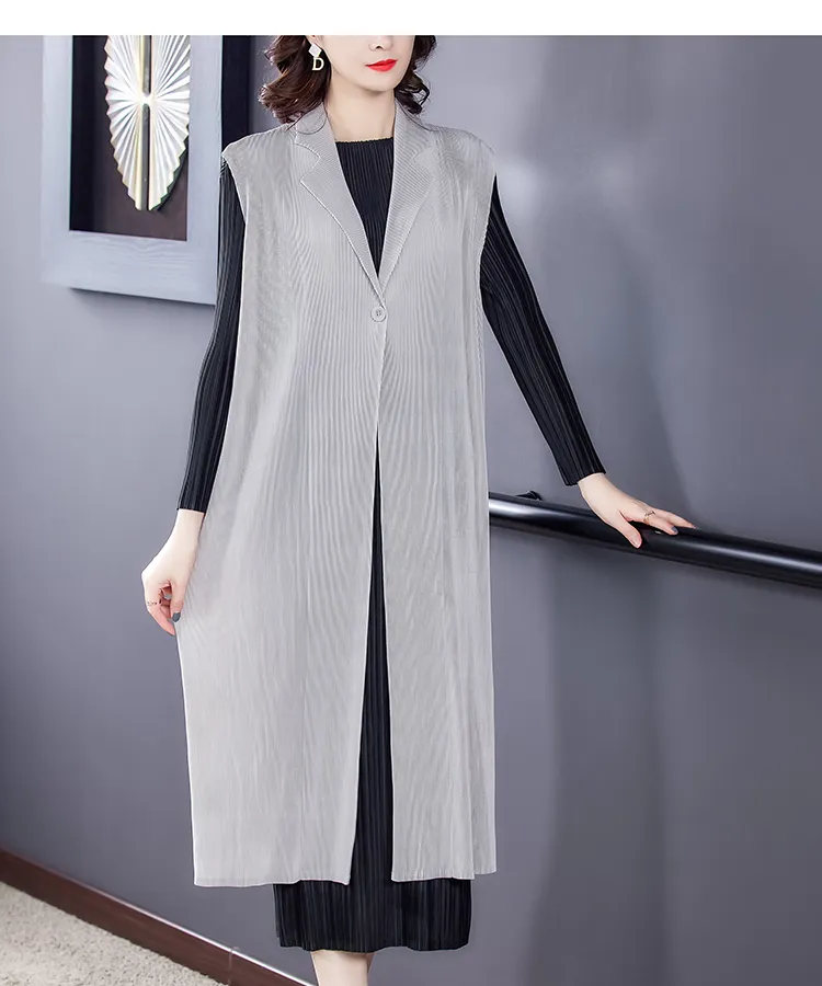 衣都精品- 2023新款純色大碼顯瘦中長款無袖風衣外套