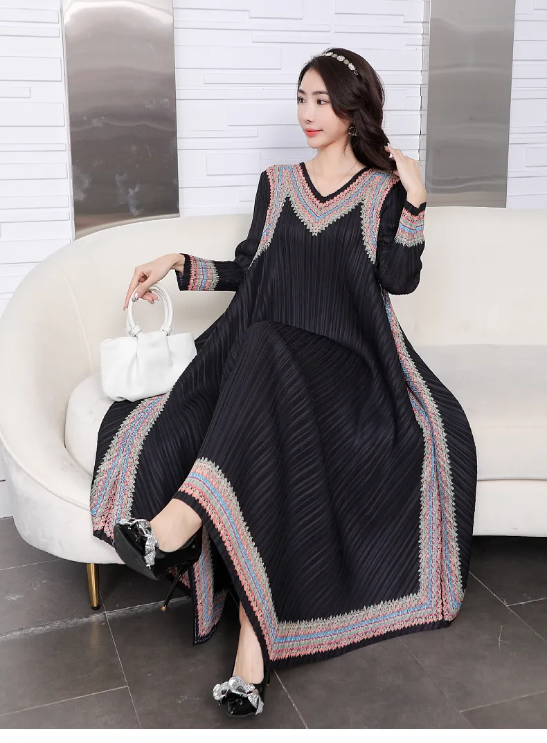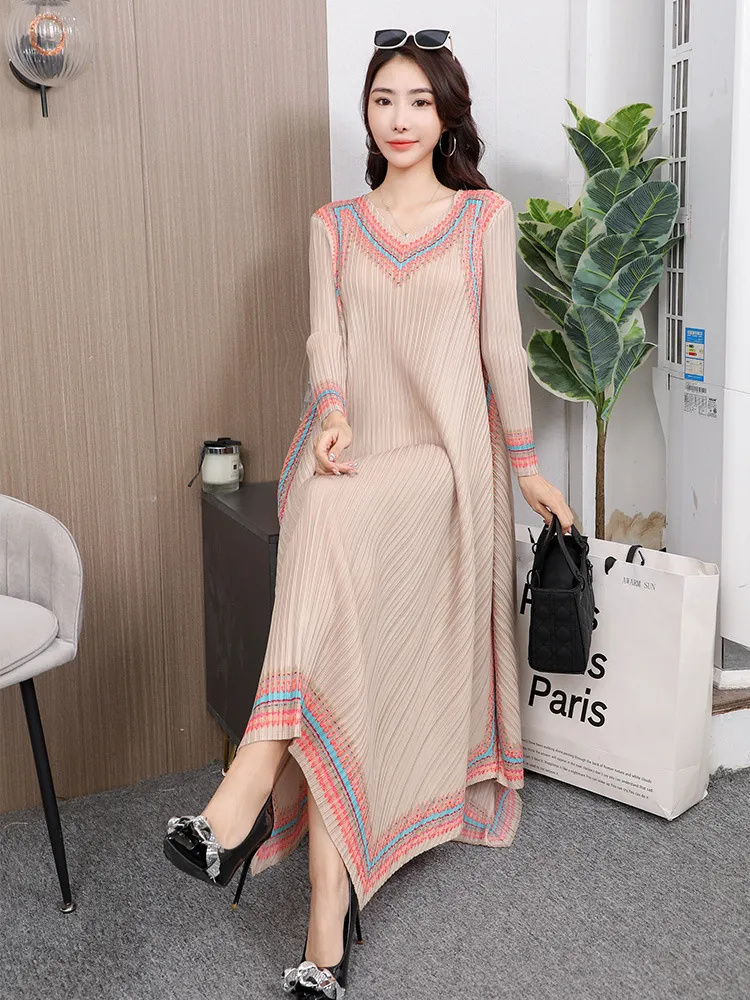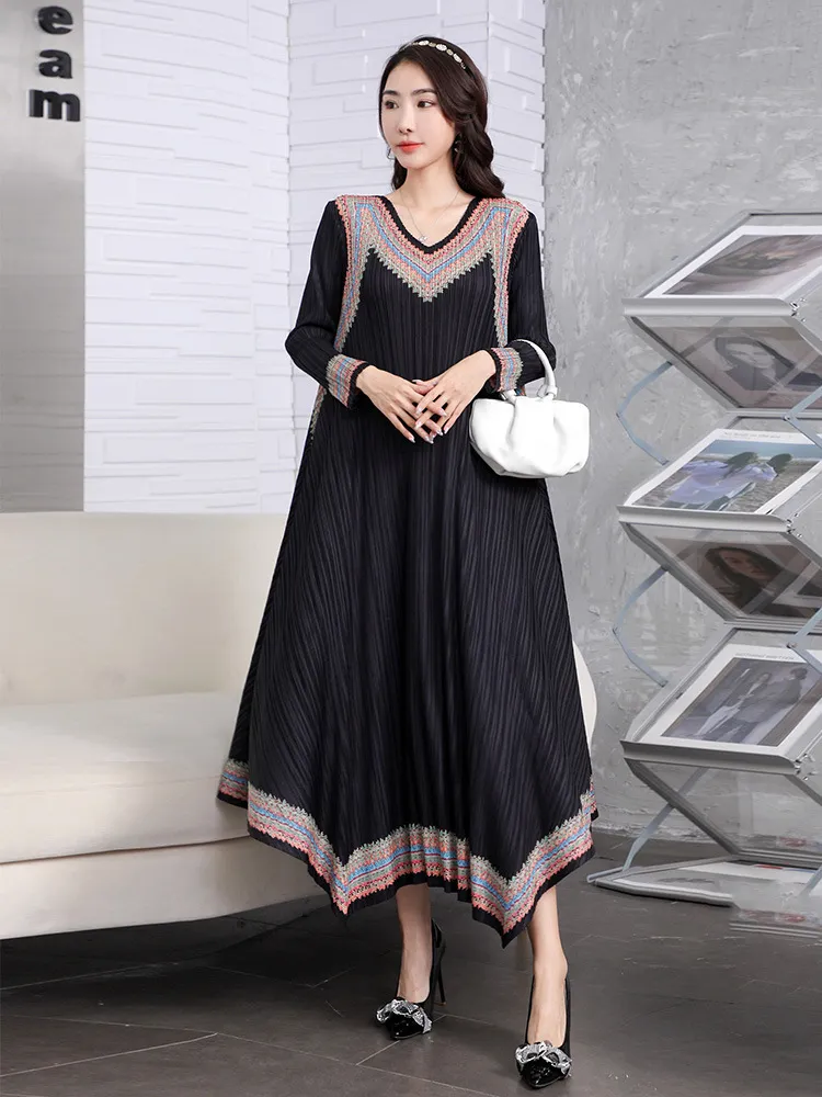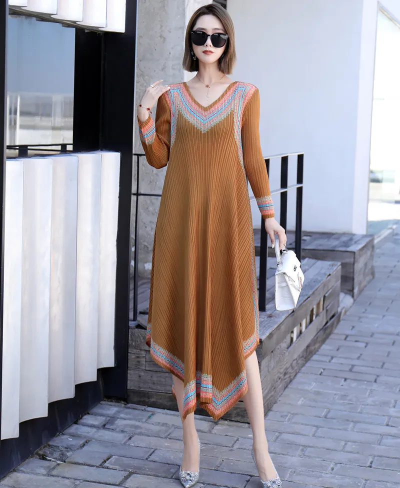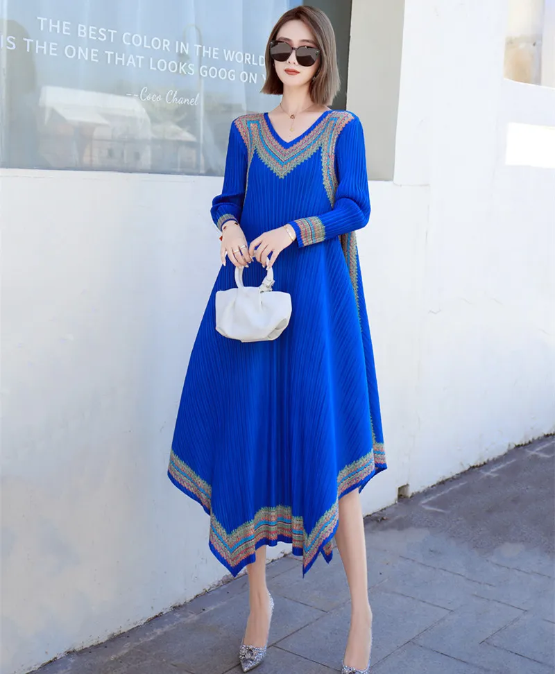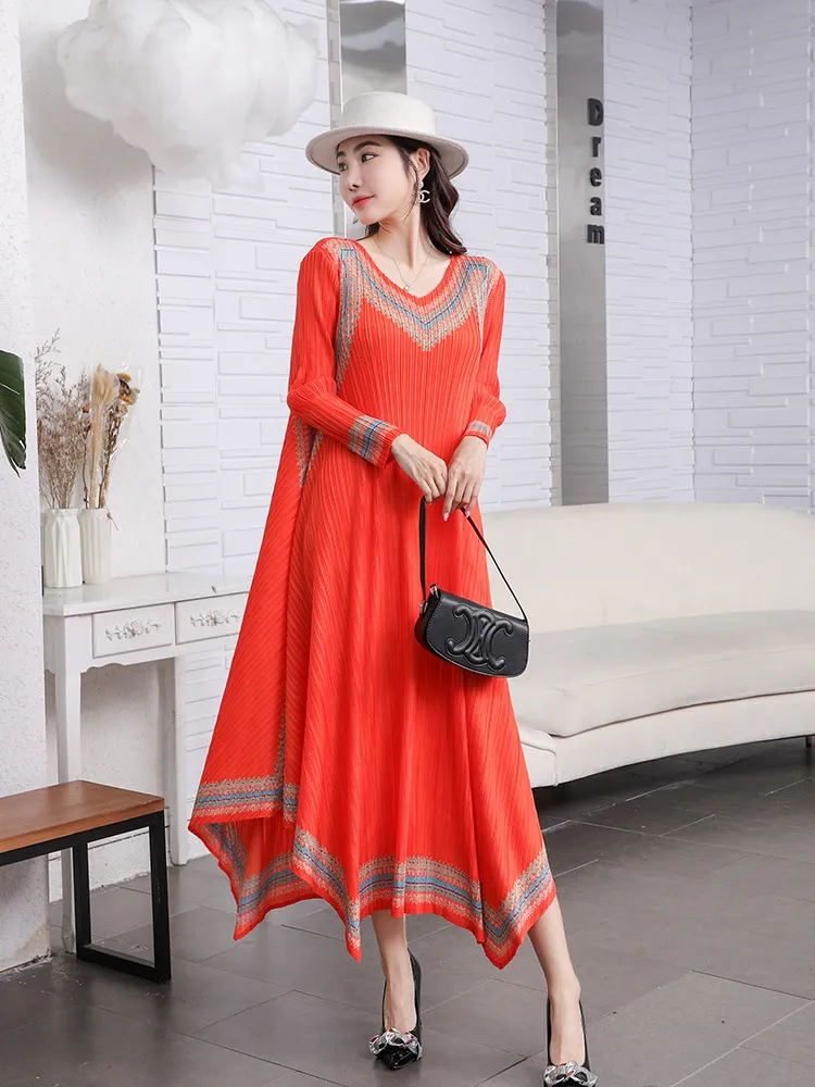 衣都精品- 2023新款優雅氣質復古印花褶皺連衣裙