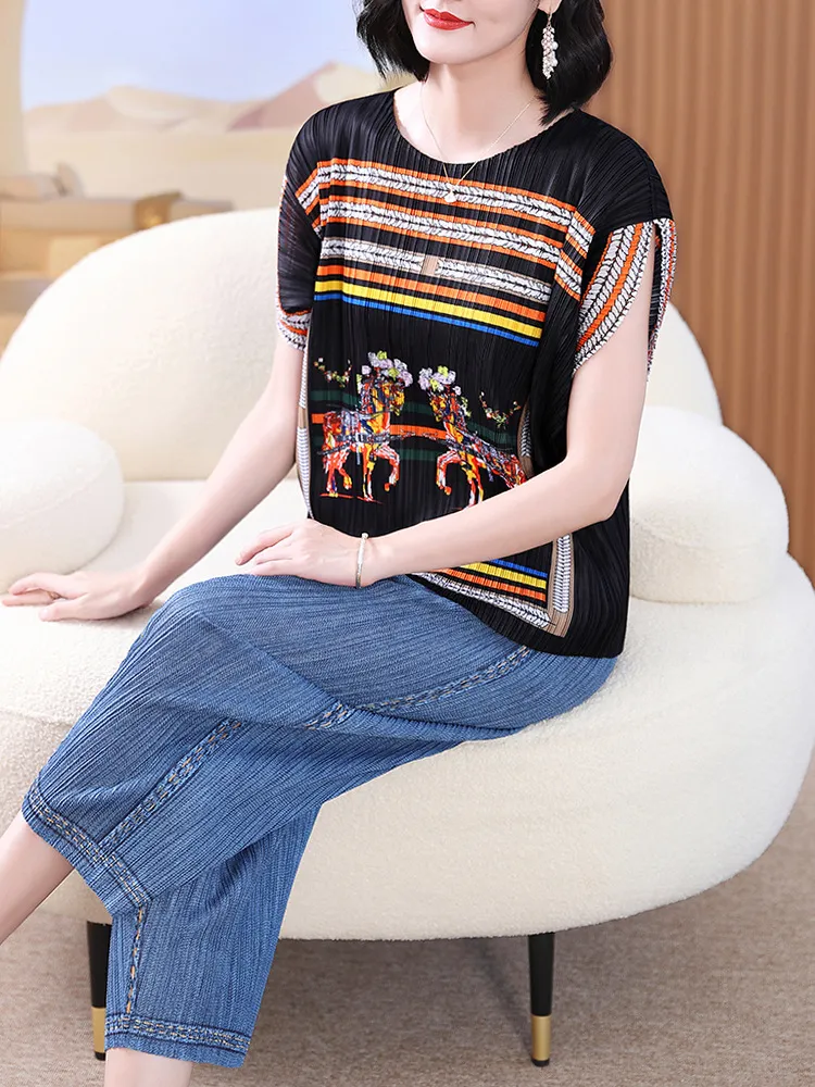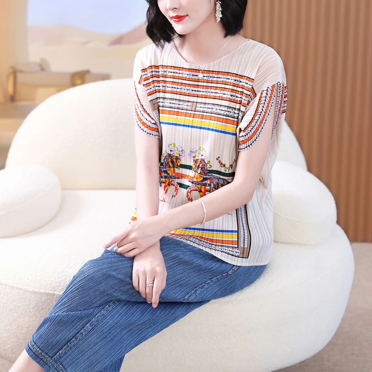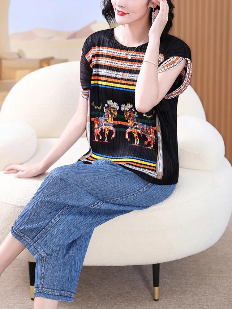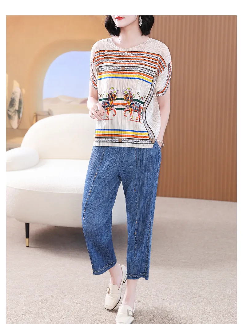 衣都精品- 2023新款時尚修身上衣+印花百褶半身裙二件套套裝