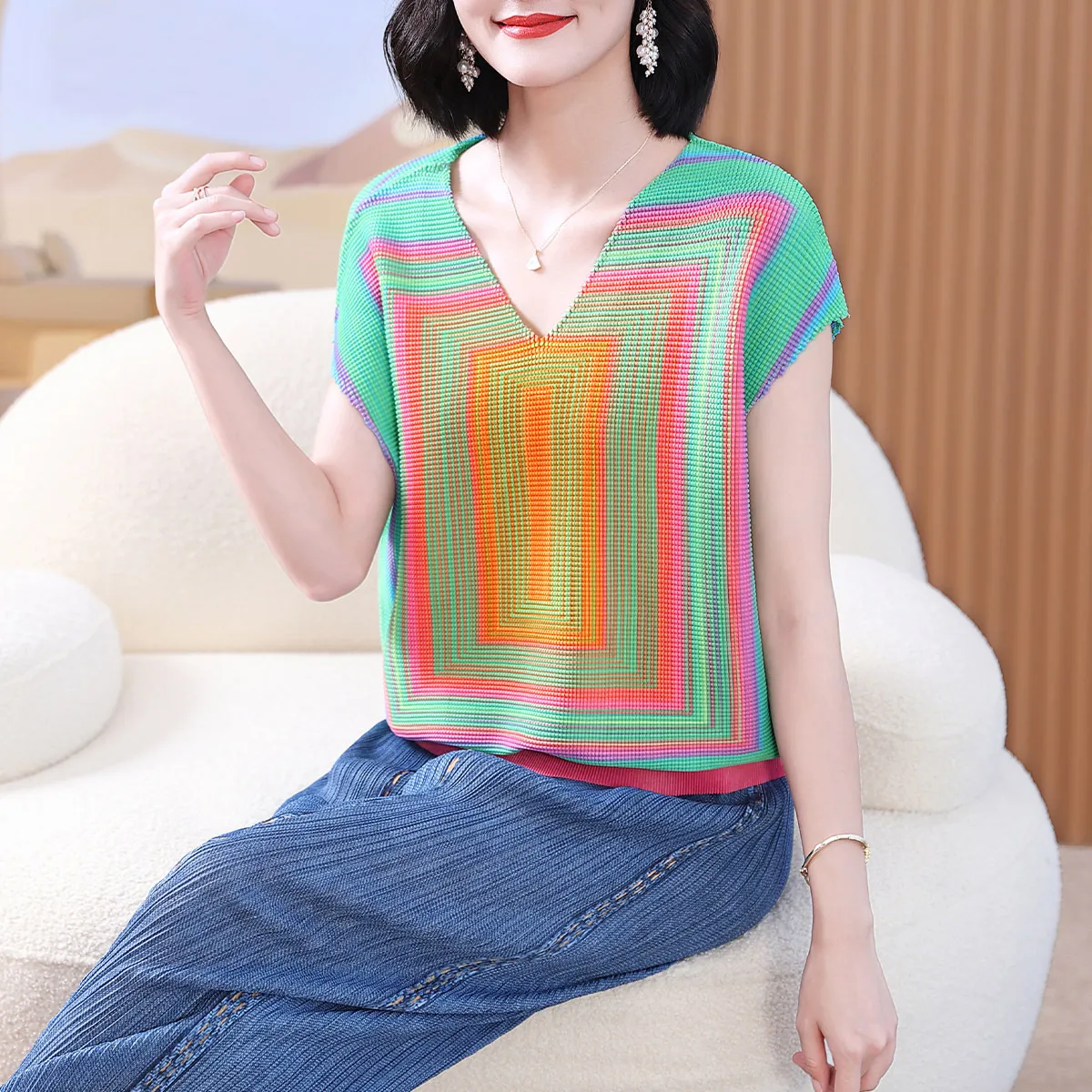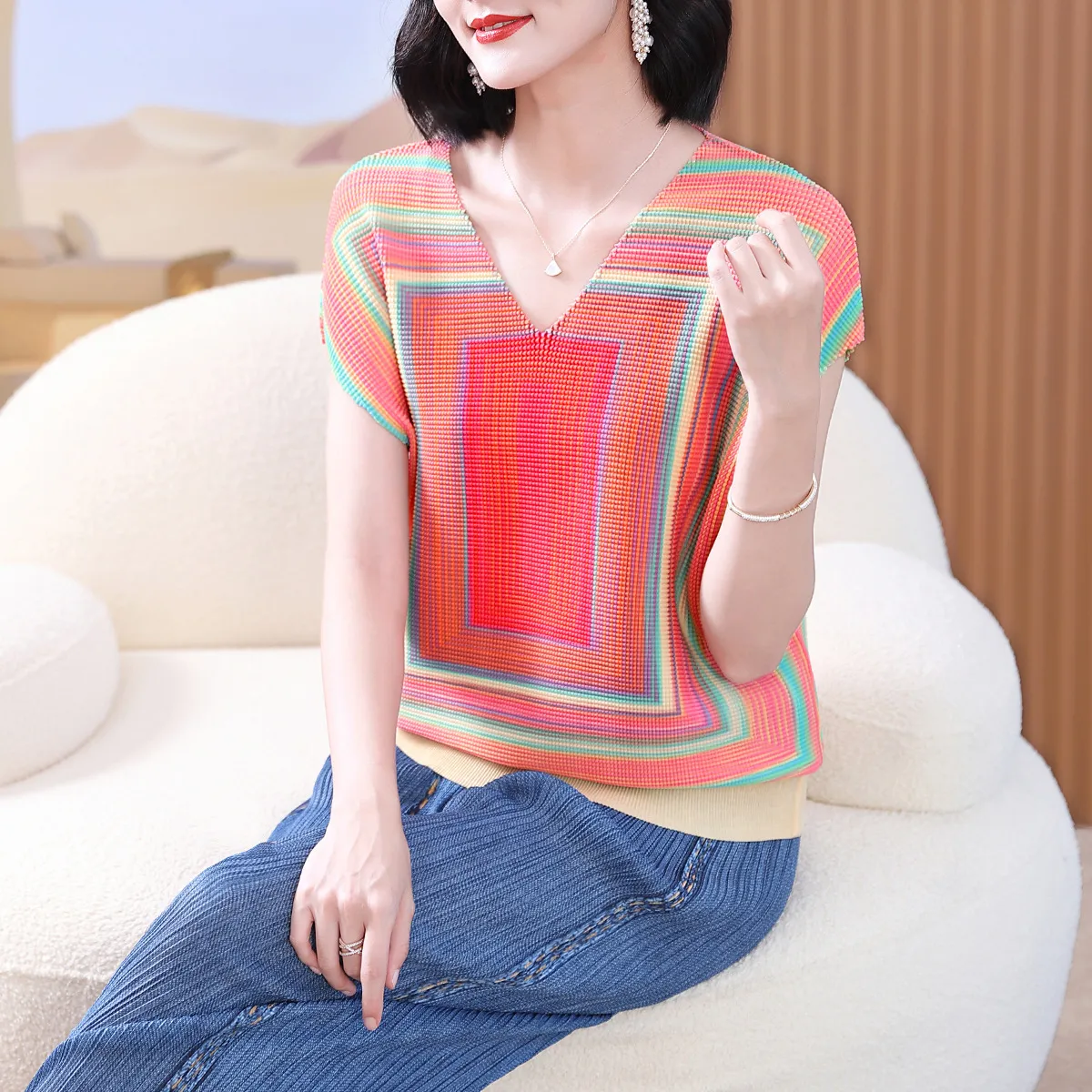 衣都精品- 2023新款時尚褶皺小眾設計感短袖上衣