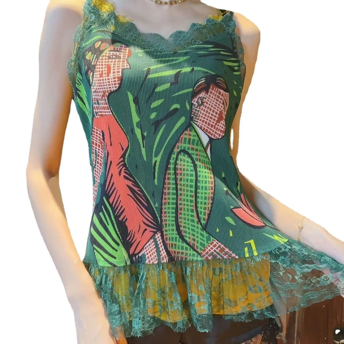 衣都精品- 2023新款時尚百搭褶皺印花小背心上衣