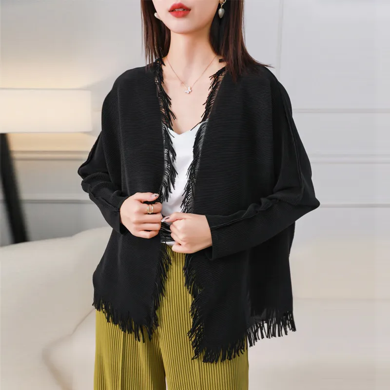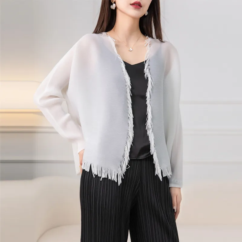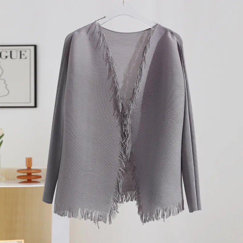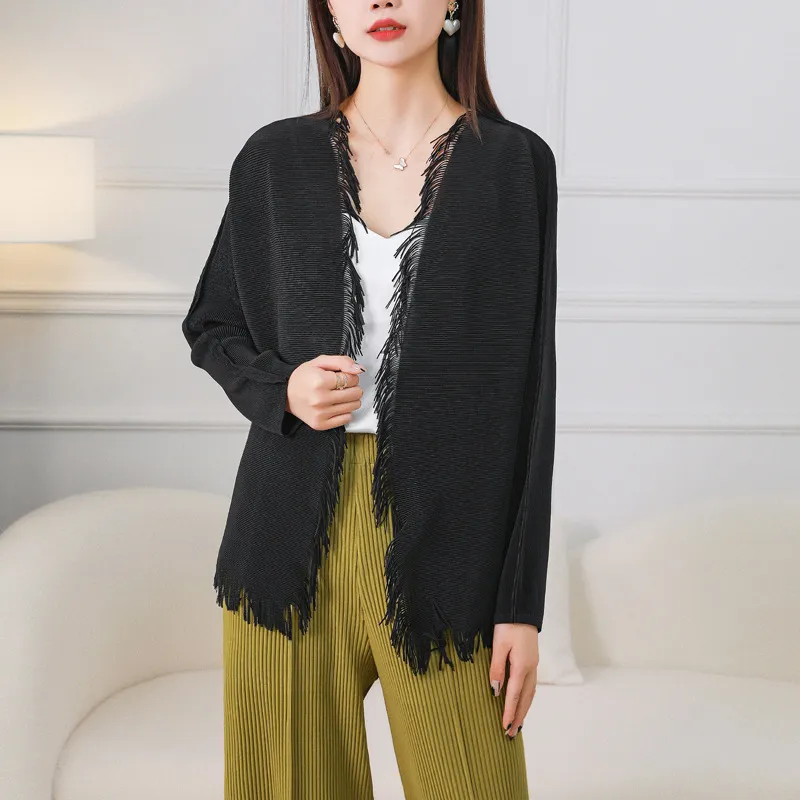 衣都精品- 2023新款長袖流蘇休閒褶皺時尚開衫外套
