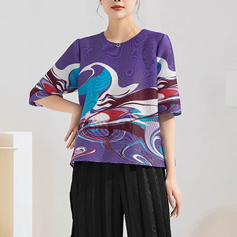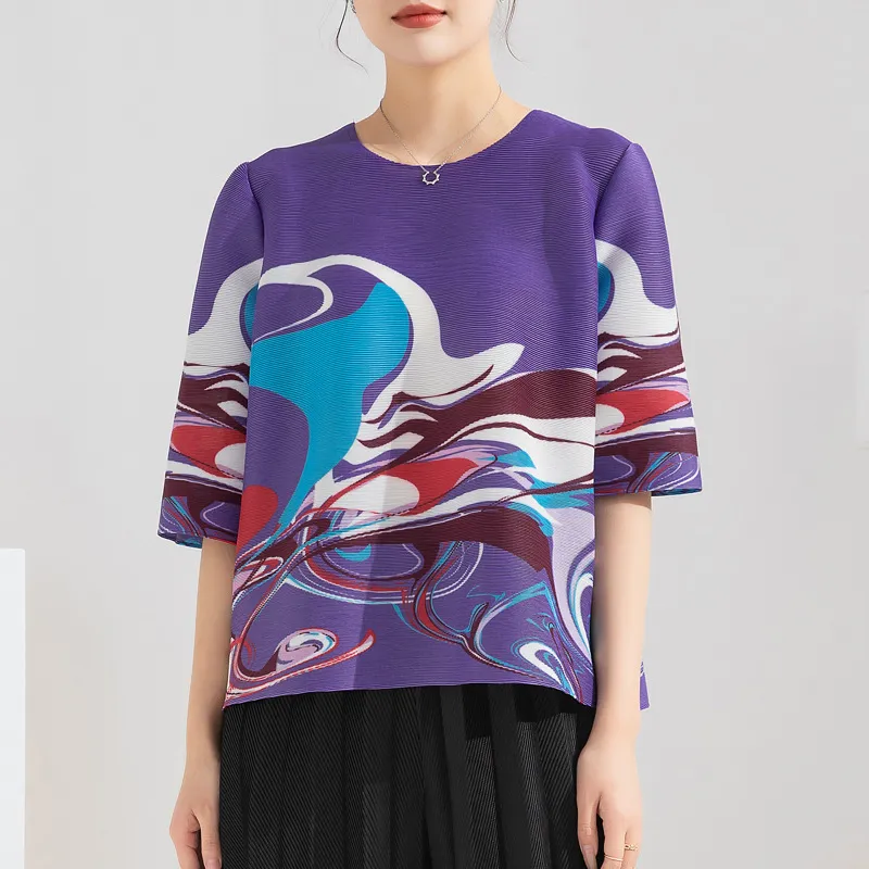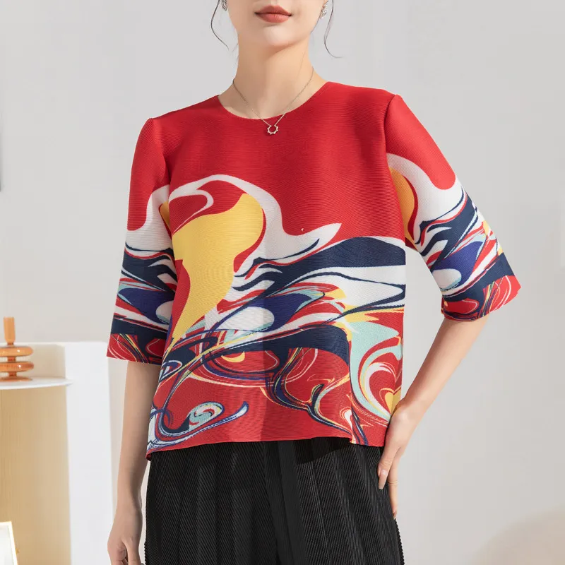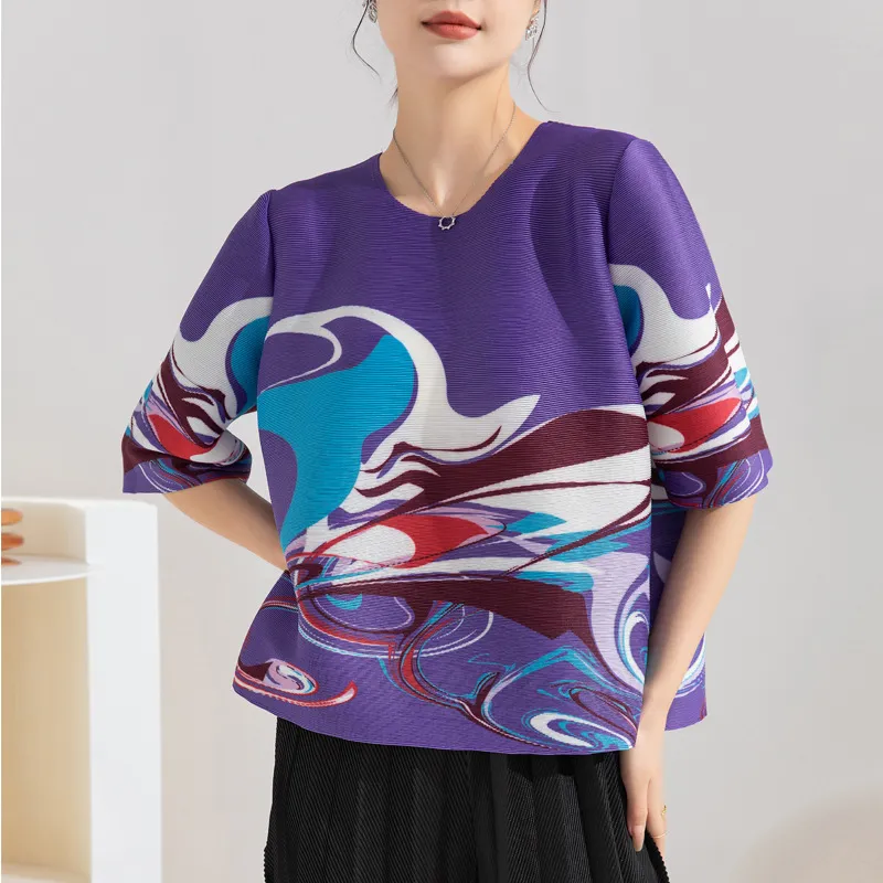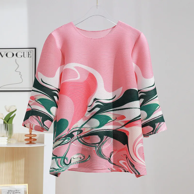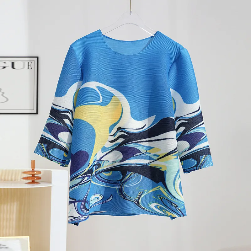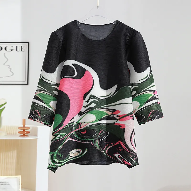 衣都精品- 2023新款印花寬鬆大碼套頭圓領上衣