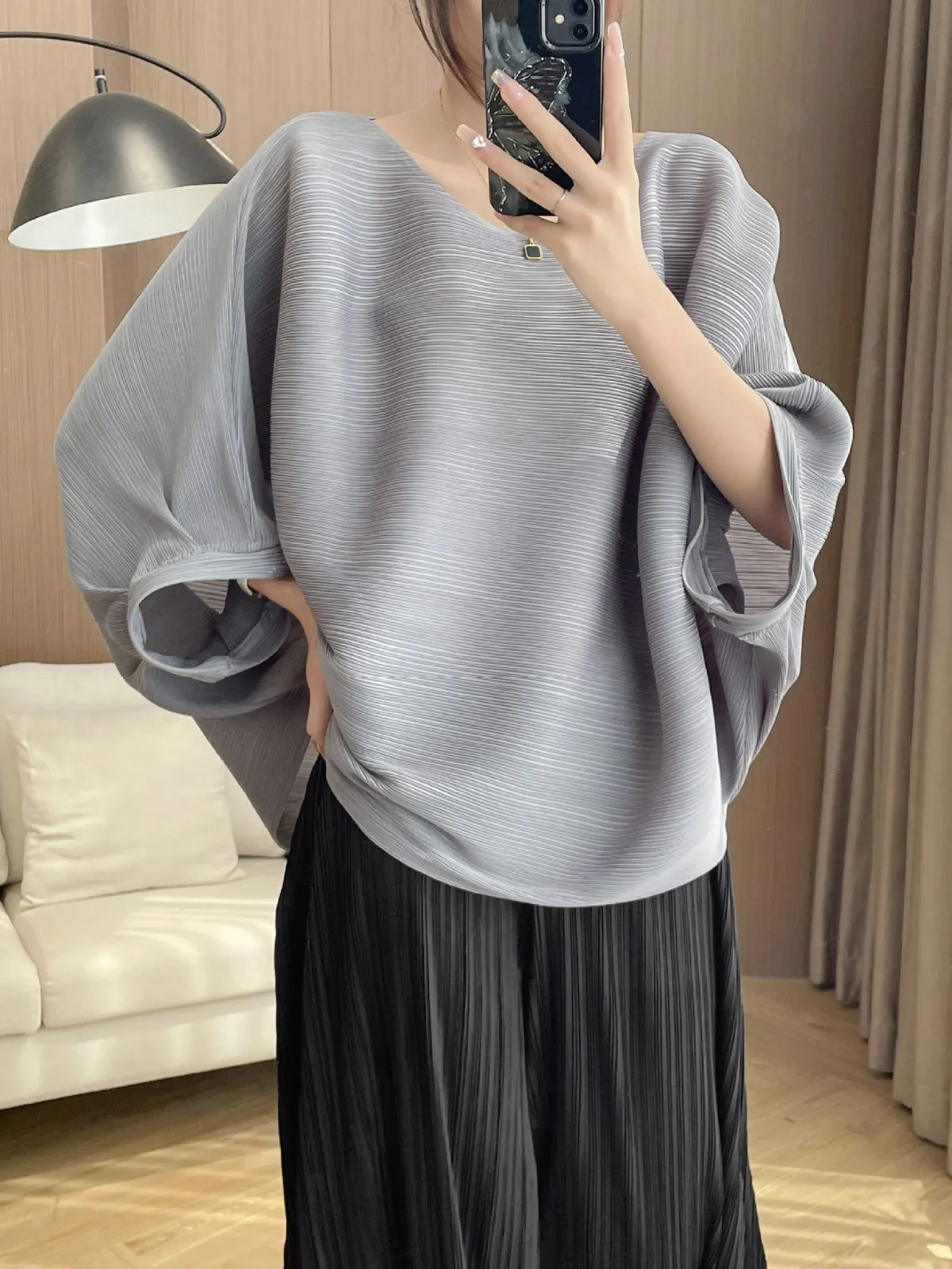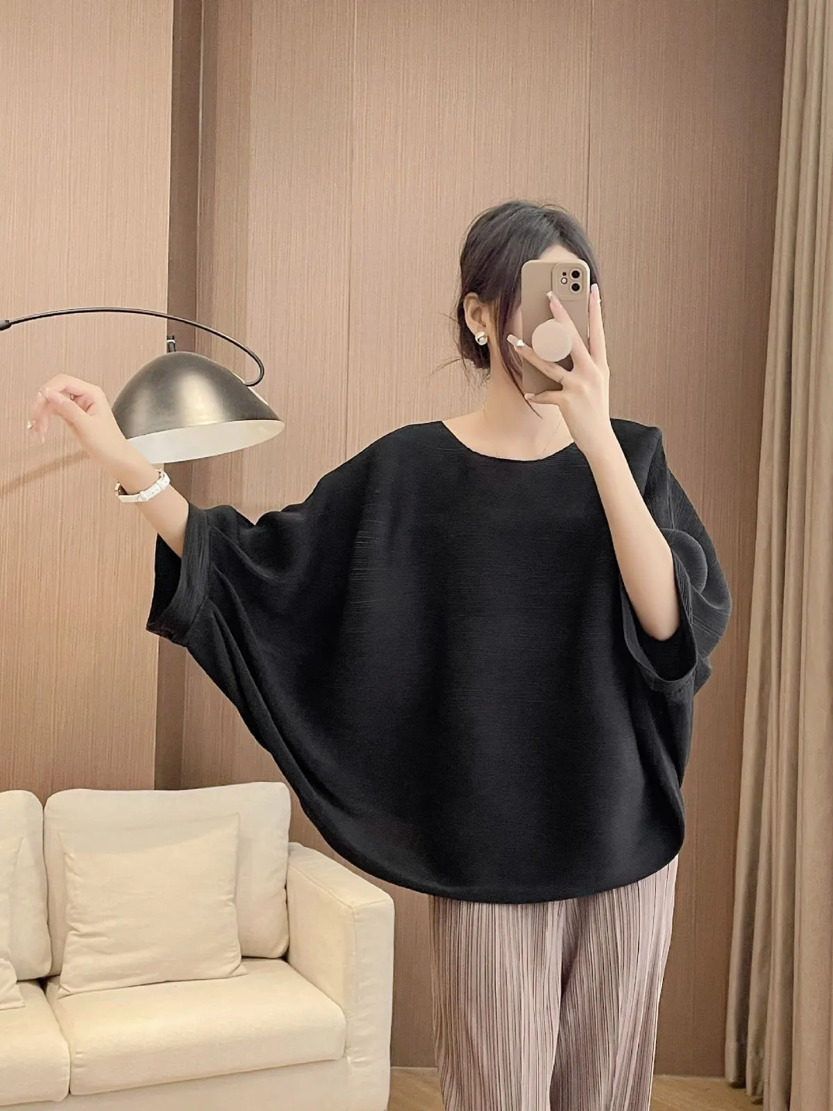 衣都精品- 2023新款蝙蝠袖寬鬆大碼褶皺短款外套
