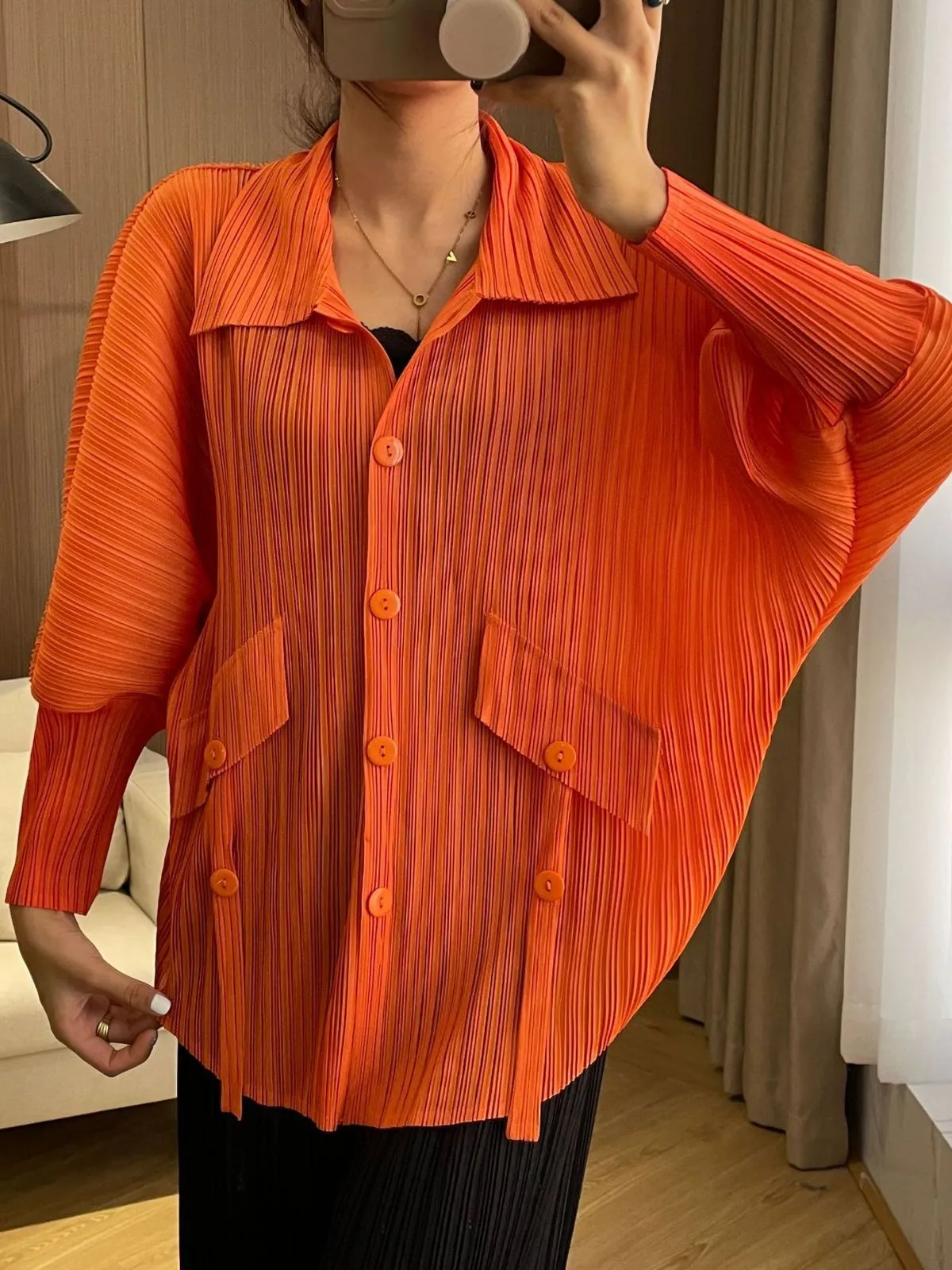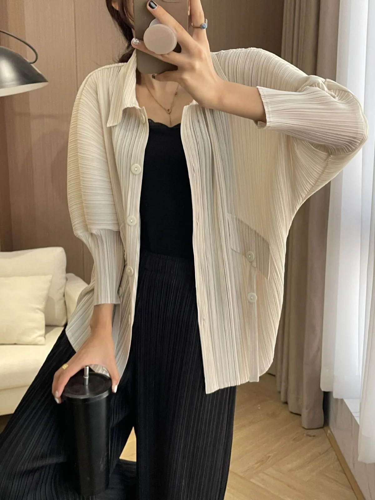 衣都精品- 2023新款蝙蝠袖寬鬆大碼褶皺短款外套