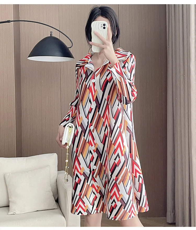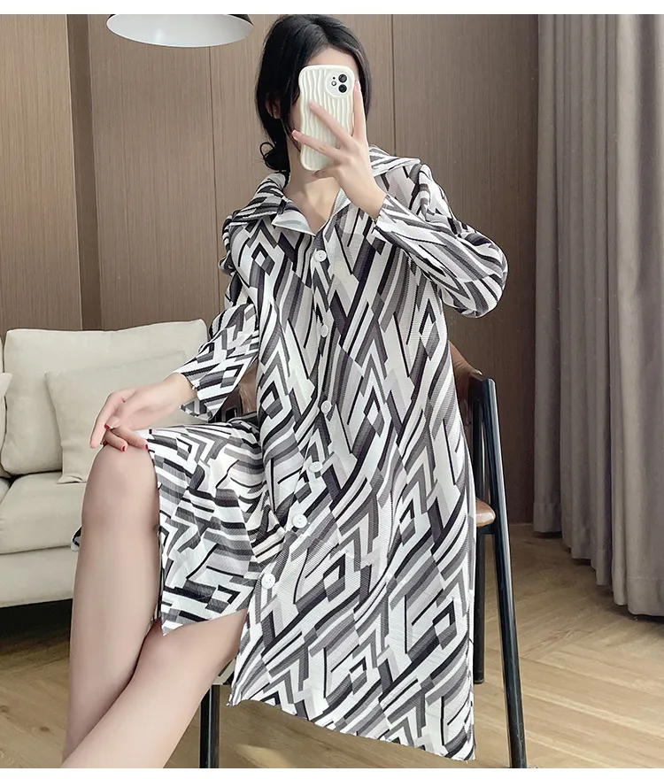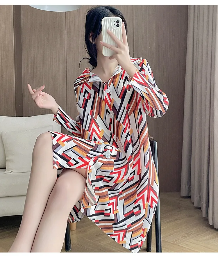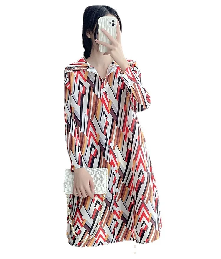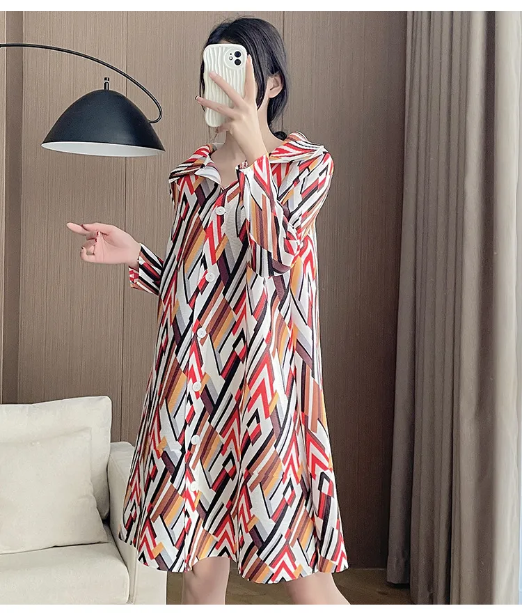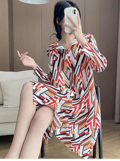 衣都精品- 2023新款時尚氣質寬鬆褶皺印花連衣裙