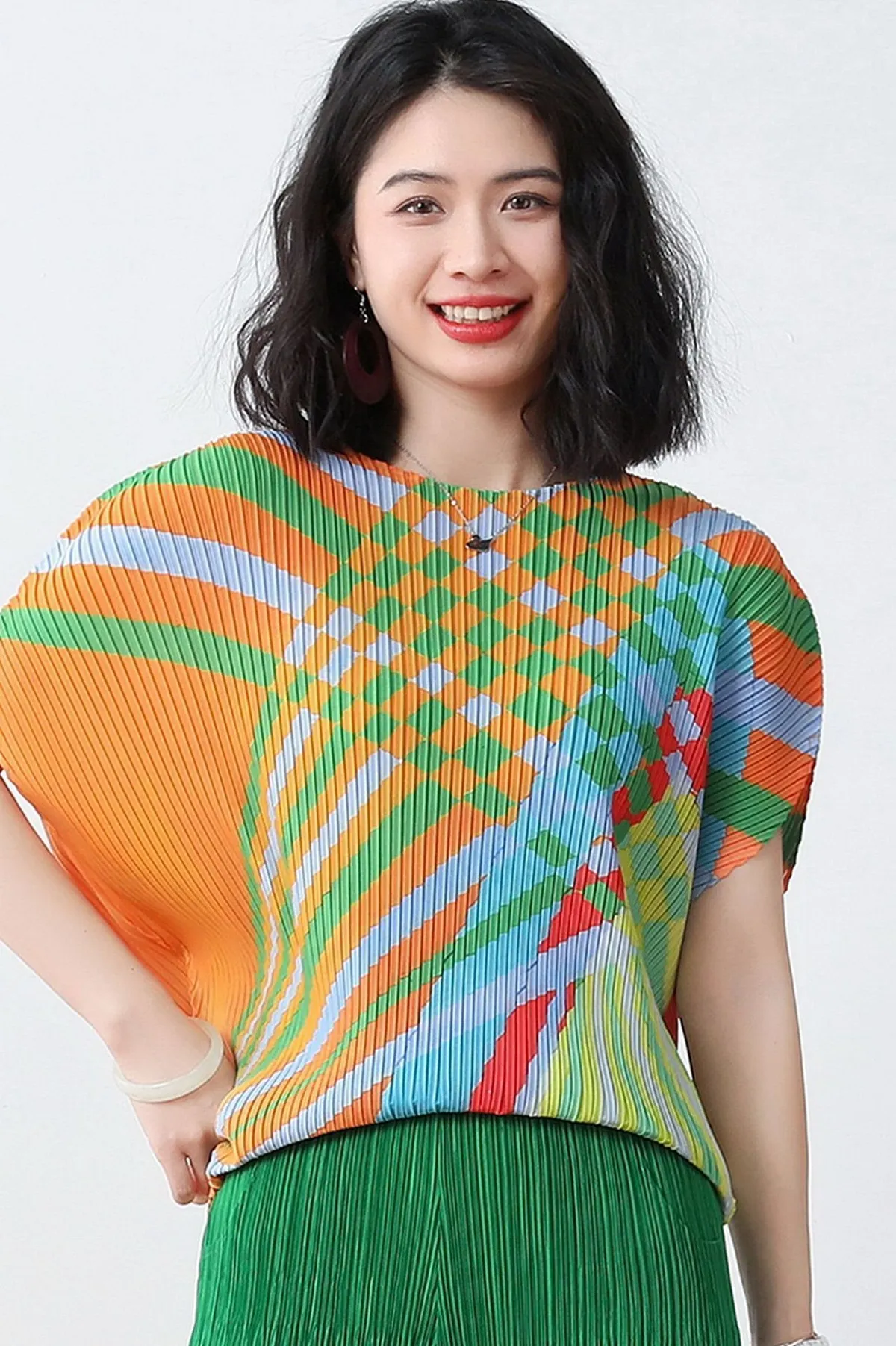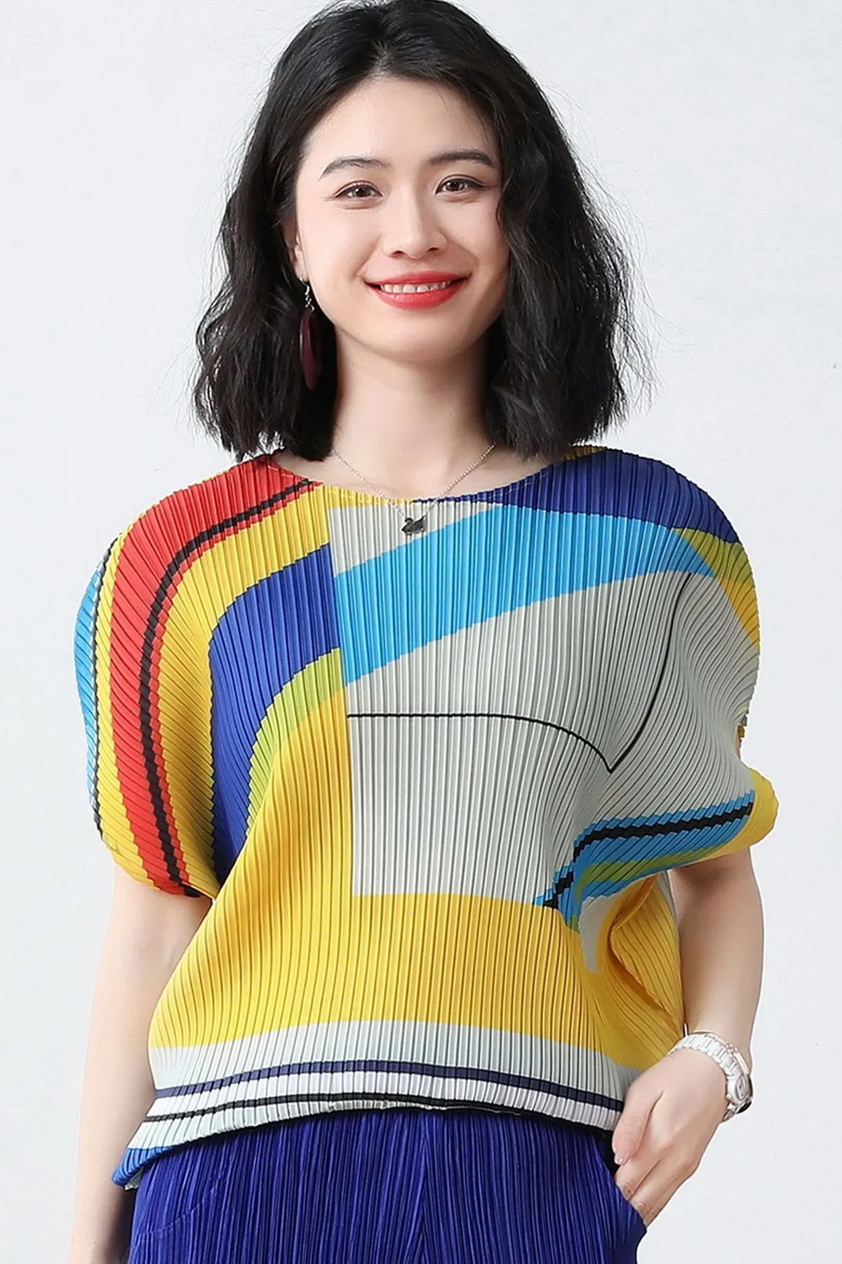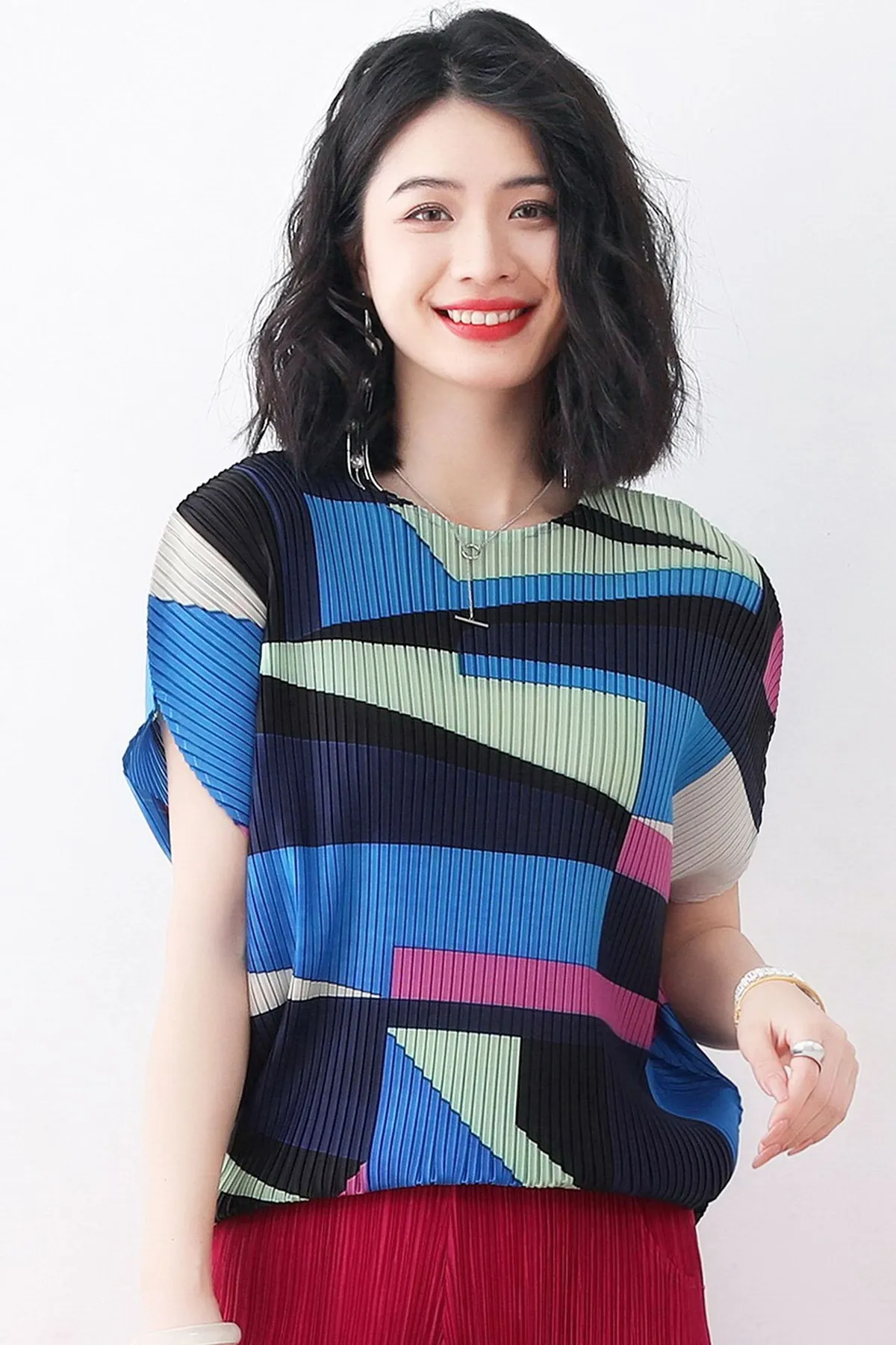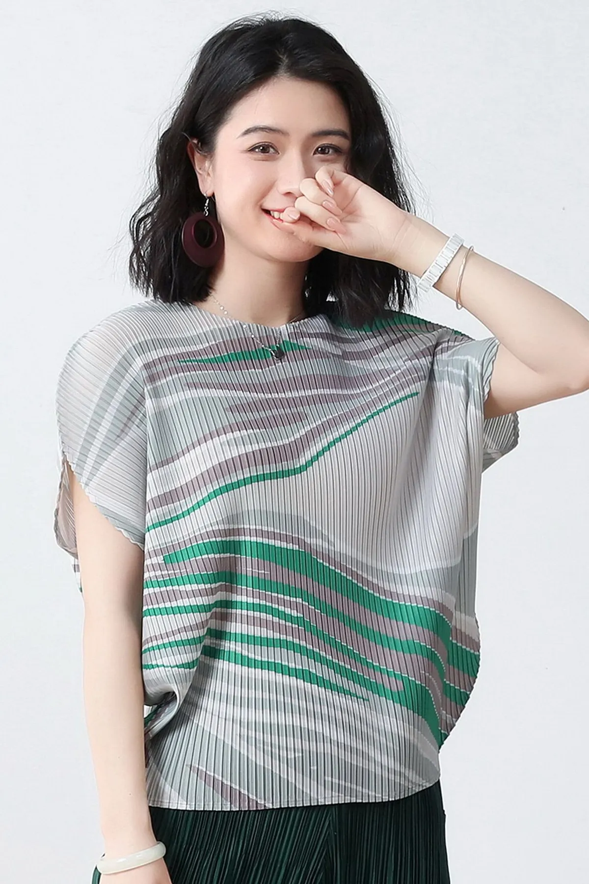 衣都精品- 2023新款褶皺印花短袖氣質壓褶上衣